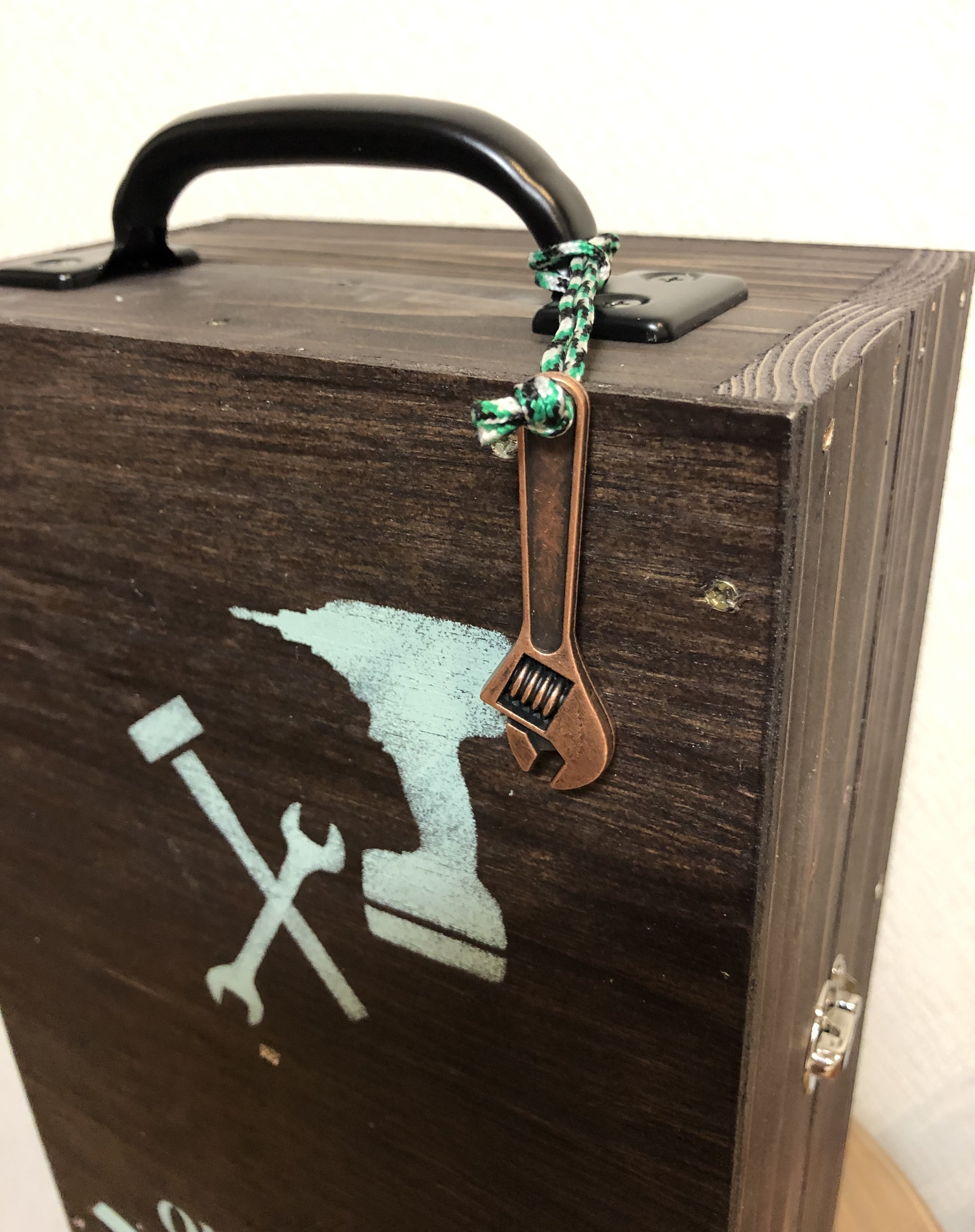 取手の位置変更後にあいた穴を埋め、マステをいたずらに貼り、ガチャのレンチ🔧を付けて終了👏