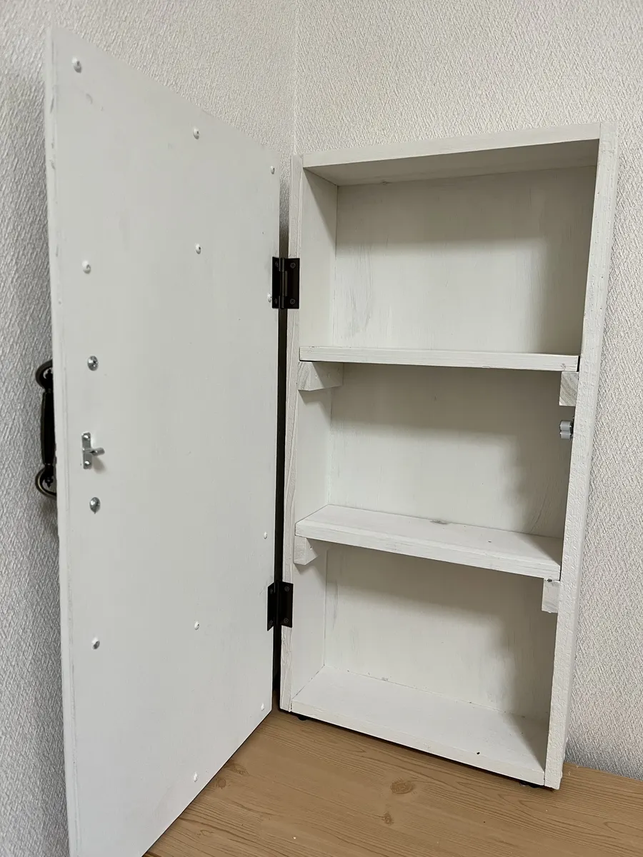 私もこのドアキャビネット、白系で塗装しました。(木目が見える塗料ですが)
