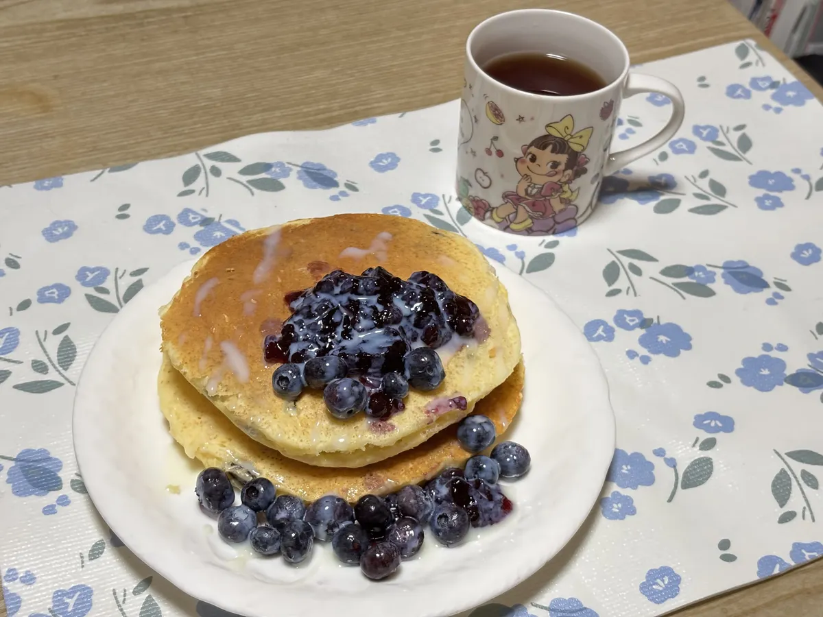 投稿を表示ブルーベリー🫐ジャムのパンケーキ美味しそうですね😋