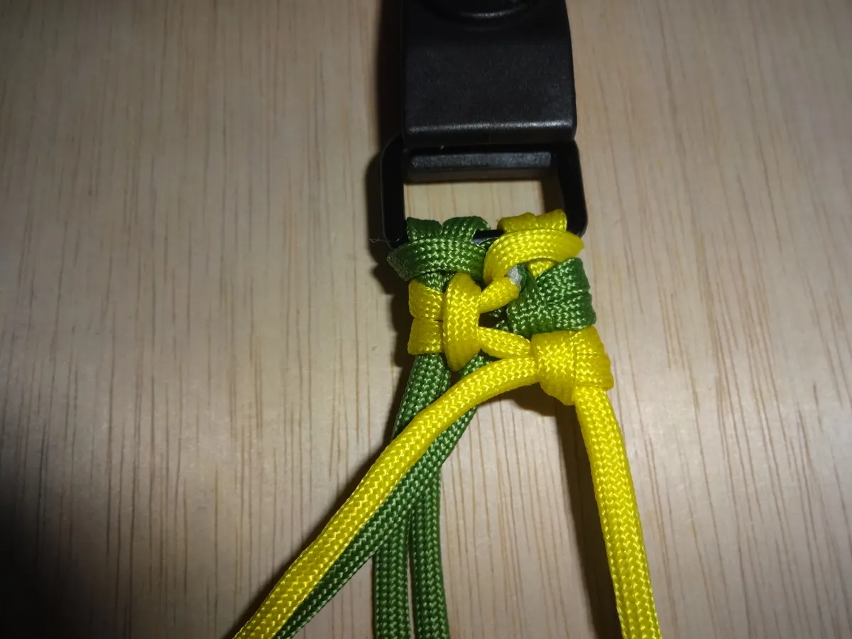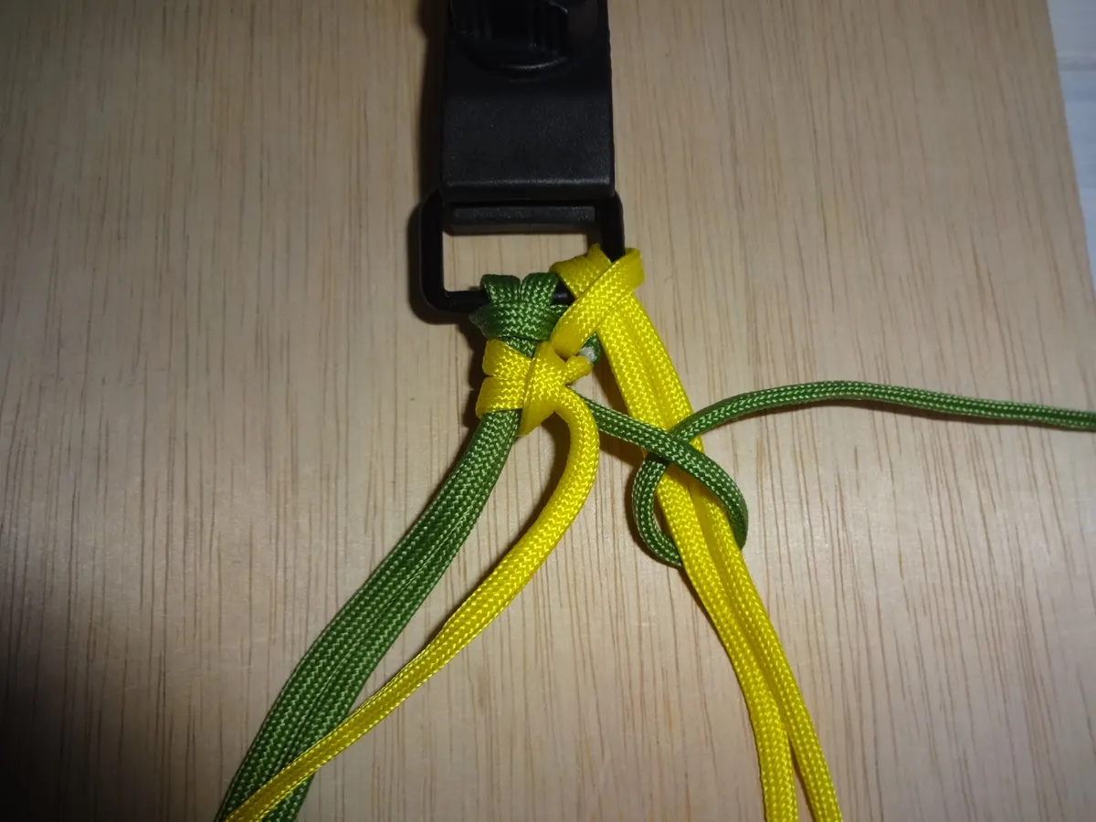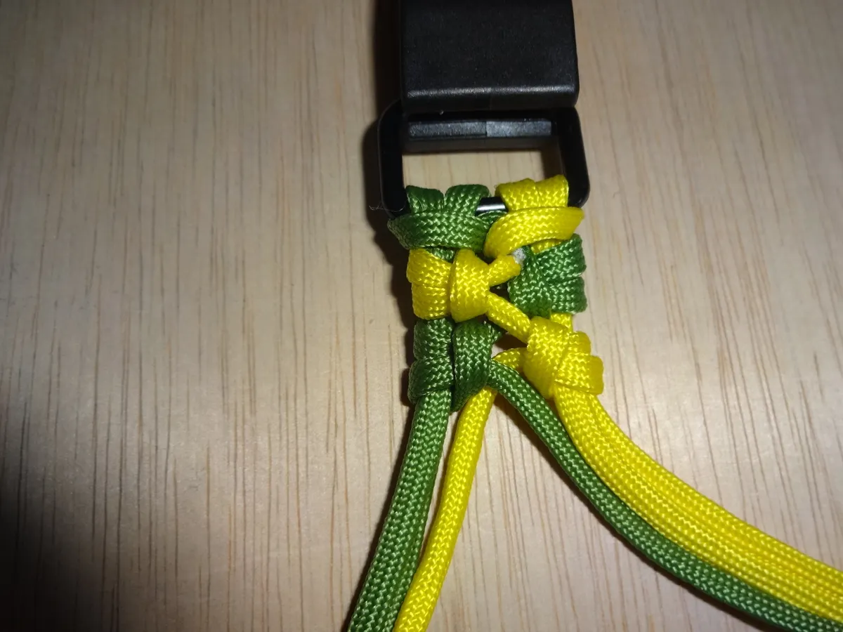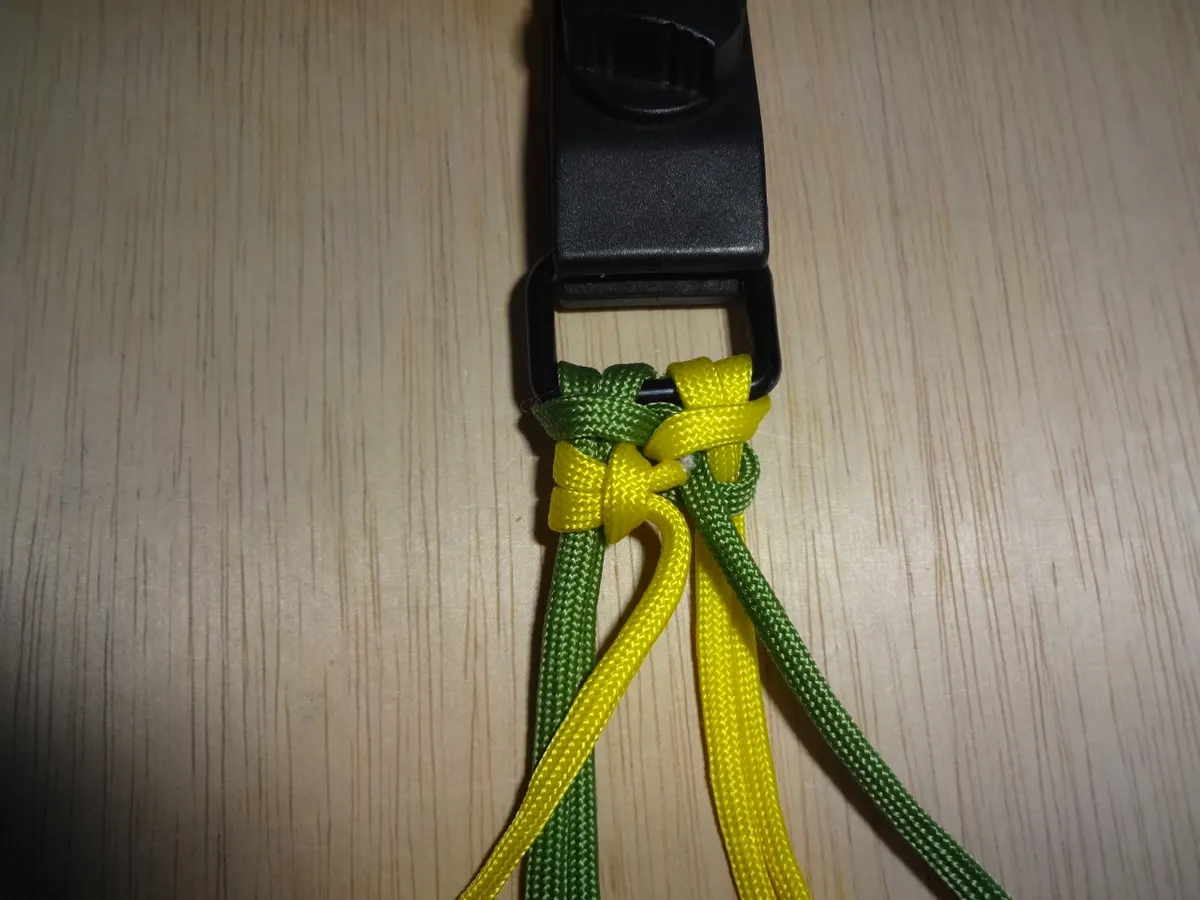 ↓ 締めると 左右 1個 出来ました。黄優先です。中央の緑と黄が交差してる部分を見て