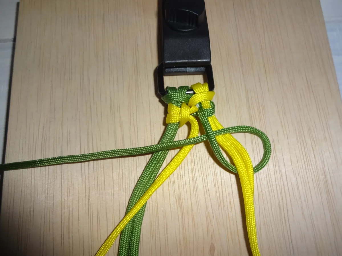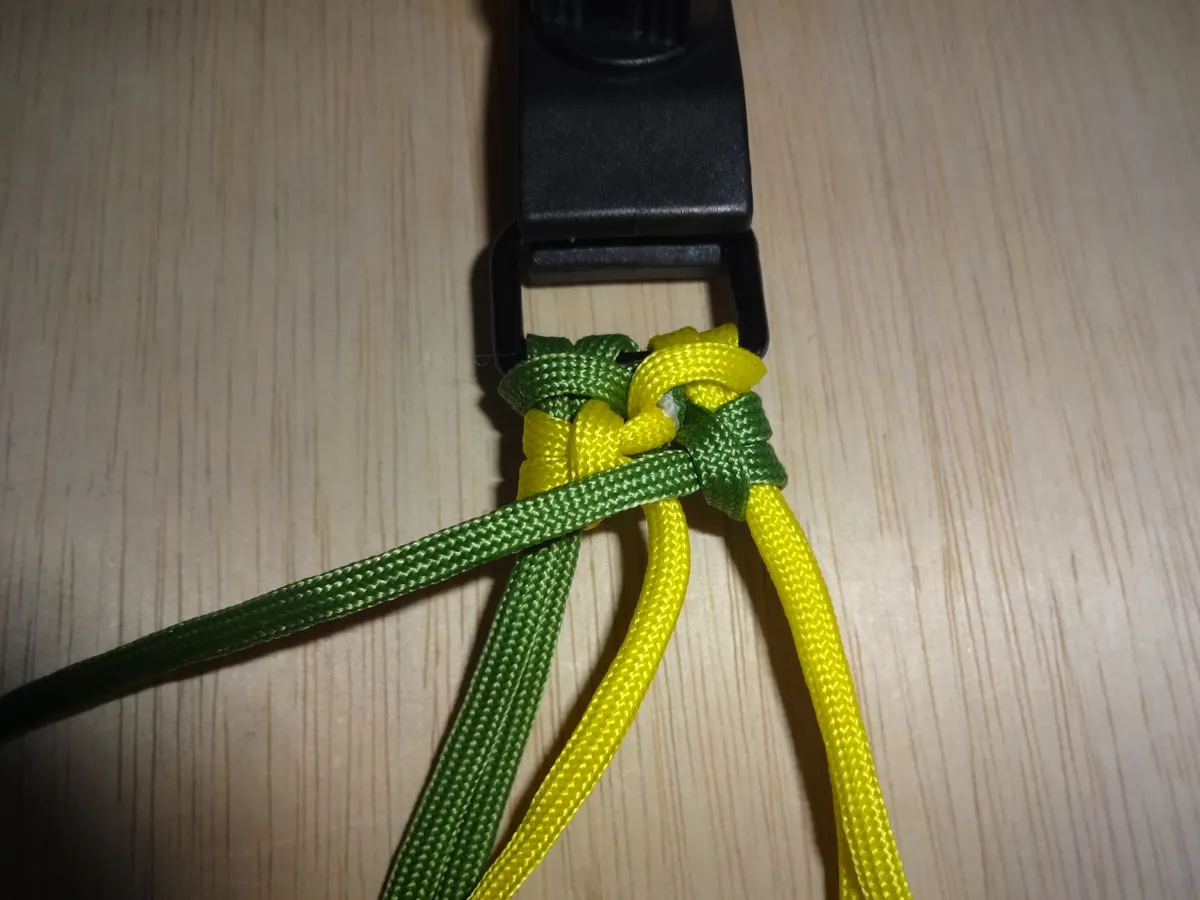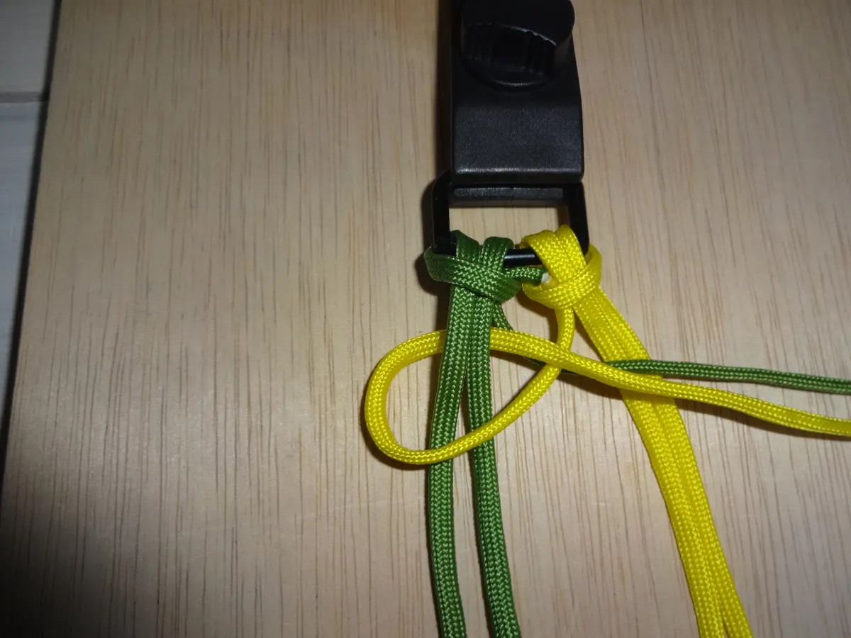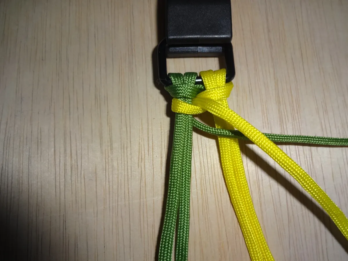 ↓ 締めると 左右 1個 出来ました。黄優先です。中央の緑と黄が交差してる部分を見て