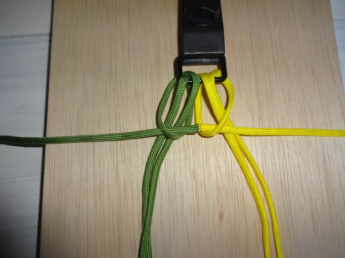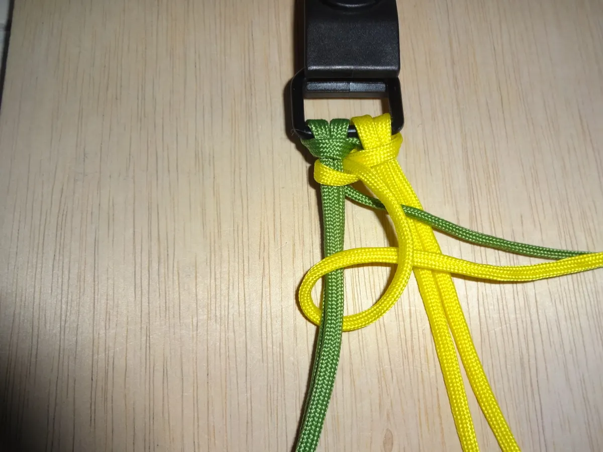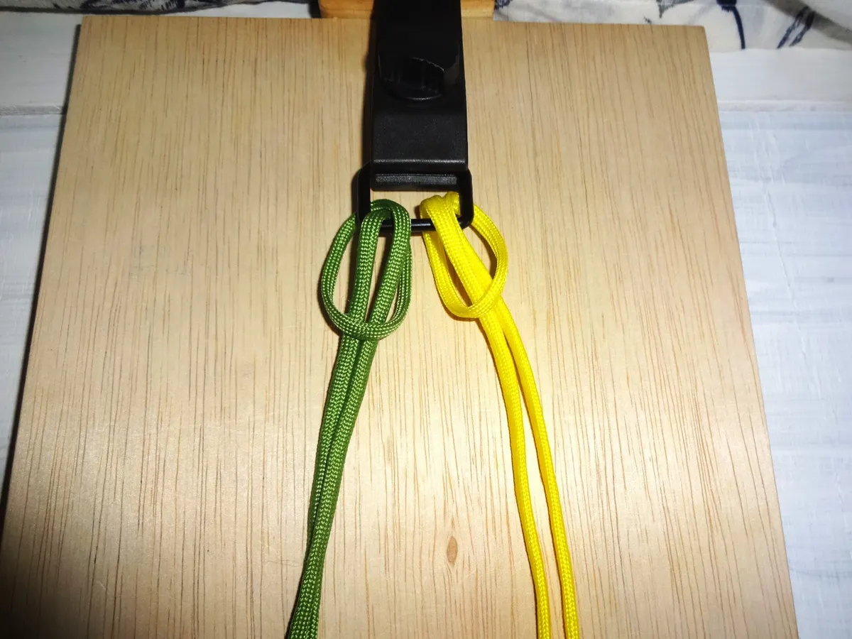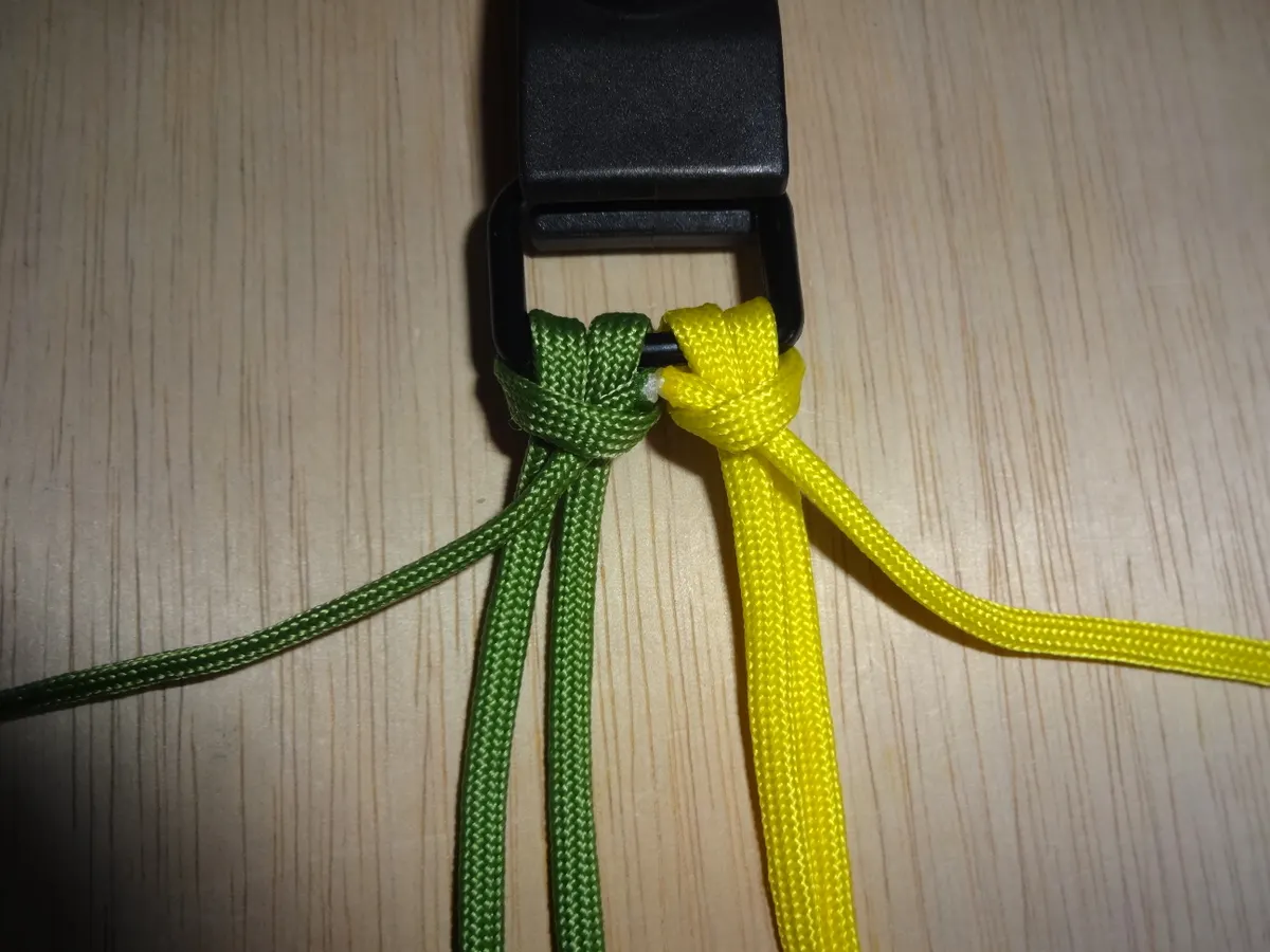 ↓ 締めると 左右 1個 出来ました。黄優先です。中央の緑と黄が交差してる部分を見て