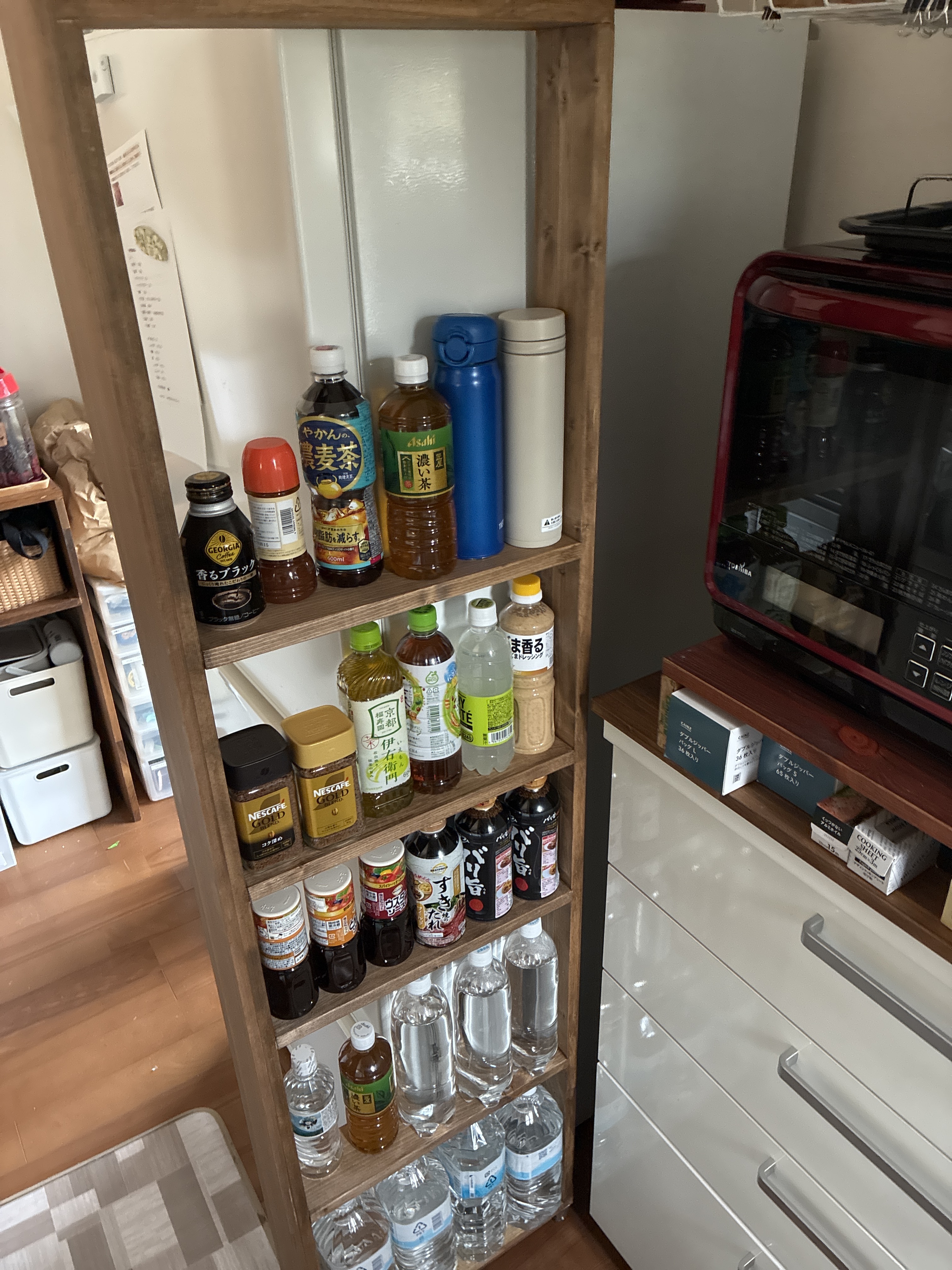 ②収納力抜群(シンプルで、ワンバイフォーの幅があれば大抵のペットボトルやビン類は入る)