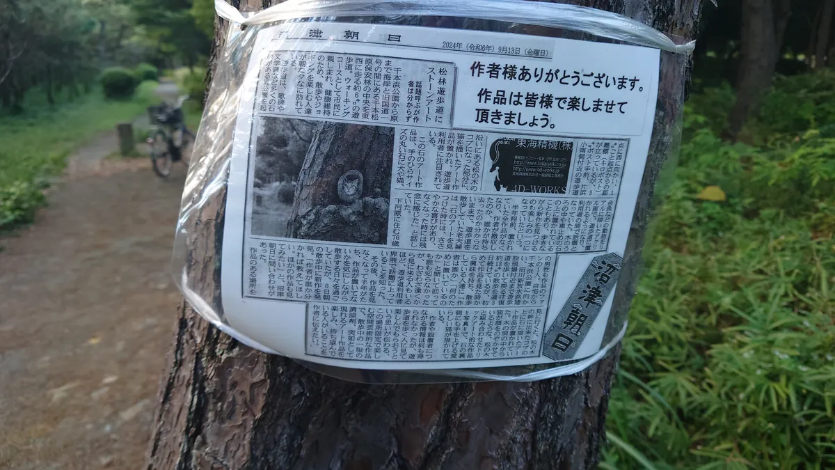 トップ > にゃん祭りDIY2026 > キャンペーン > 松林遊歩道ストンアート発見散歩 はまサン 2026/02/19 08:01 松林遊歩道ストンアート発見散歩 ■作品内容 松林遊歩道の所々に石の絵を置き、散歩している人に楽しんでいただく。( 新聞📰) ■作品のこだわりポイント 遊歩道から分かりやすい所に設置 樹木🪵は傷つけない遊歩道から見ることができる 遠くから、あっ、なんか貼ってある?のが見えた。 一瞬!注意書きかと、誰だこうゆう事をするのは……?やべ〜!まずかったかな? 近づくと新聞記事?エ〜!知らなかった。 この事が取材されていたのです✨ ここを散歩している人からの新聞社への問い合わせだった事がわかりました。ヨカッタ😮💨 小物雑貨部門【にゃん祭りDIY2026】 いいね 共有する 共有する X LINE リンクをコピー コメントする 4 件の返信 (新着順) ミュートしたユーザーの投稿です。 投稿を表示 tsuyo_maru 2026/02/21 23:19 どの作品も素敵なのですが、 1枚目の招き猫の白猫さんの表情がたまらなく好きです😻✨✨ いいね 返信する ミュートしたユーザーの投稿です。 投稿を表示 はまサン 2026/02/22 08:13 tsuyo_maru ありがとうございます✨ 白猫さん、立体的に影をつけたのとポップな色、招き猫のイメージと違った目が良かったのかな。アンバランスな表情です✨😾😊 ありがとうございました。✨ いいね 返信する ミュートしたユーザーの投稿です。 投稿を表示 tsuyo_maru 2026/02/23 23:20 はまサン こちらこそ、素敵な作品を拝見できて嬉しいです✨✨ いいね 返信する ミュートしたユーザーの投稿です。 投稿を表示 パール 2026/02/21 16:36 遊歩道を歩く人達に喜んでいただけて嬉しいですね😊🎶 お近くの人は楽しみですね😉💕🎵 いいね 返信する ミュートしたユーザーの投稿です。 投稿を表示 はまサン 2026/02/21 19:37 パール はい、ありがとうございます✨ 沢山の方々に見てもらえて嬉しかったです。 散歩の方が増えた様な気がしました。😀 いいね 返信する ミュートしたユーザーの投稿です。 投稿を表示 ぷぅ 2026/02/19 14:26 可愛い🩷 楽しい😃 いいね 返信する ミュートしたユーザーの投稿です。 投稿を表示 はまサン 2026/02/19 17:45 ぷぅ ありがとうございます✨ 猫ちゃんポップな感じ楽しい色 沢山の人に楽しんでもらいました。😊 いいね 返信する ミュートしたユーザーの投稿です。 投稿を表示 はぴ子(旧happyくぅ) 2026/02/19 10:12 すごーーーい✨パチパチ(ノω<。)ノ))☆.。(ノω<。)ノ))☆.。 見る者を笑顔にしてくれる素敵な取り組みで、みにいきたくなりました♪ 新聞を掲げてくれた人も、とても感動して守っていきたくなったんだろうな。。と心があたたかくなりました。 いいね 返信する ミュートしたユーザーの投稿です。 投稿を表示 はまサン 2026/02/19 20:27 はぴ子(旧happyくぅ) コメントいただきありがとうございます😊 1個置き次、別の場所へと、数が増え、回収せず、そのうち消える物が増えはじめ一旦止める事を決め数カ月後再び1つ2つと始め、間が空いた後その場所に行くと貼り紙が見え……マサカこんな事に 私は驚きました。記事を読み、止めれないと思いました。新聞のお陰で何事も無く増えはじめましたが、矢張り……加速が速くなるんですね。別の方法へ切替えました。ペースはおちました。 楽しみにしていた方々に別の方法で報せようと思っています😊 ありがとうございます いいね 返信する ミュートしたユーザーの投稿です。 投稿を表示 はぴ子(旧happyくぅ) 2026/02/20 23:20 はまサン 遊歩道を散歩する方々に、素敵な夢のあるサプライズで、たくさんの方々がはまサンの作品のファンになっていたのですね☺️♡新聞の記事でその想いを届けてくださって本当に、嬉しいですね♪素敵すぎて持ち帰りたくなったり、宝探しのような感覚で集めてる方もいたかもしれませんね。。 別の形でのご縁がまた、大成功しますように🙏私もファンの一人になっています♫応援しています♫ いいね 返信する ミュートしたユーザーの投稿です。 投稿を表示 はまサン 2026/02/21 07:43 はぴ子(旧happyくぅ) ありがとうございます😀 いいね 返信する