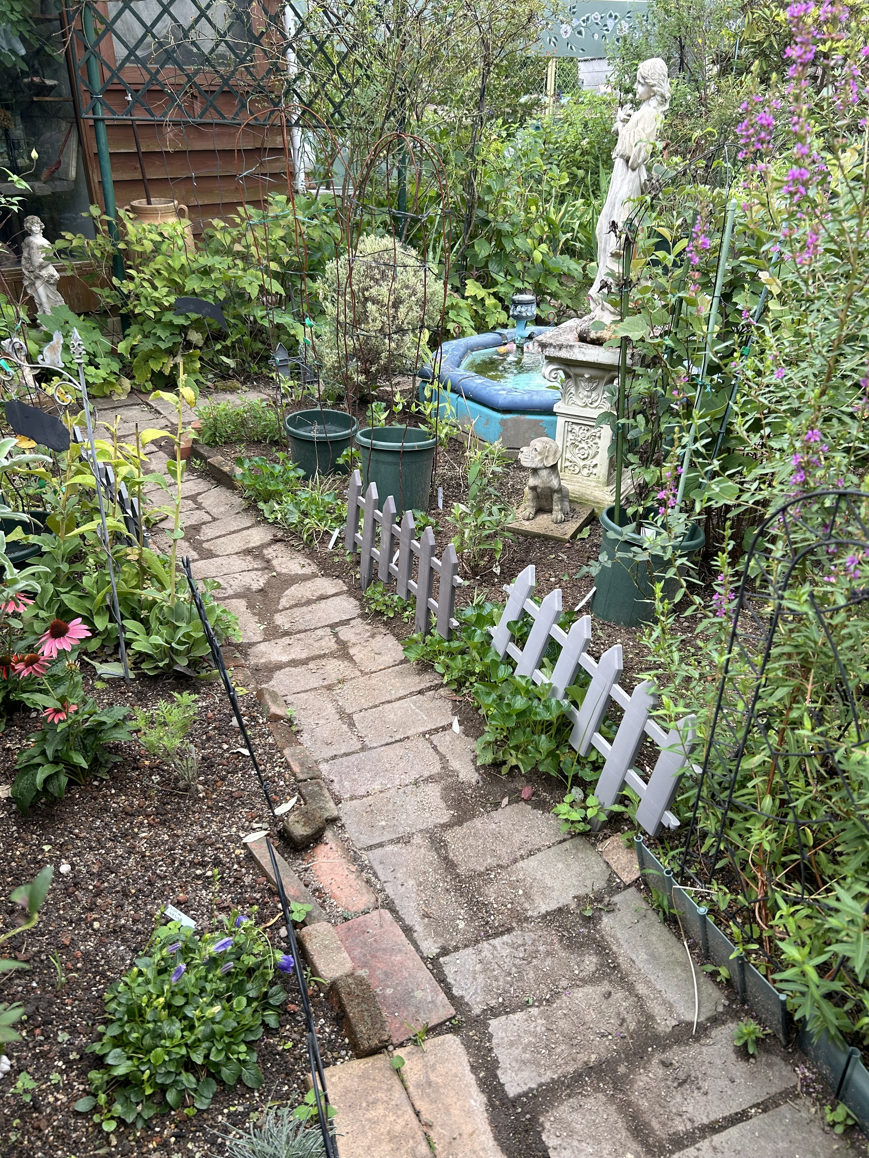 大きくなっても、縦、横とも80センチくらいなので、自然に丸みをおびた樹形になるそうで、とても楽しみ‼️ついでに、周辺の草引きも頑張ったので、とてもスッキリ綺麗な小径がでてきましたよ。