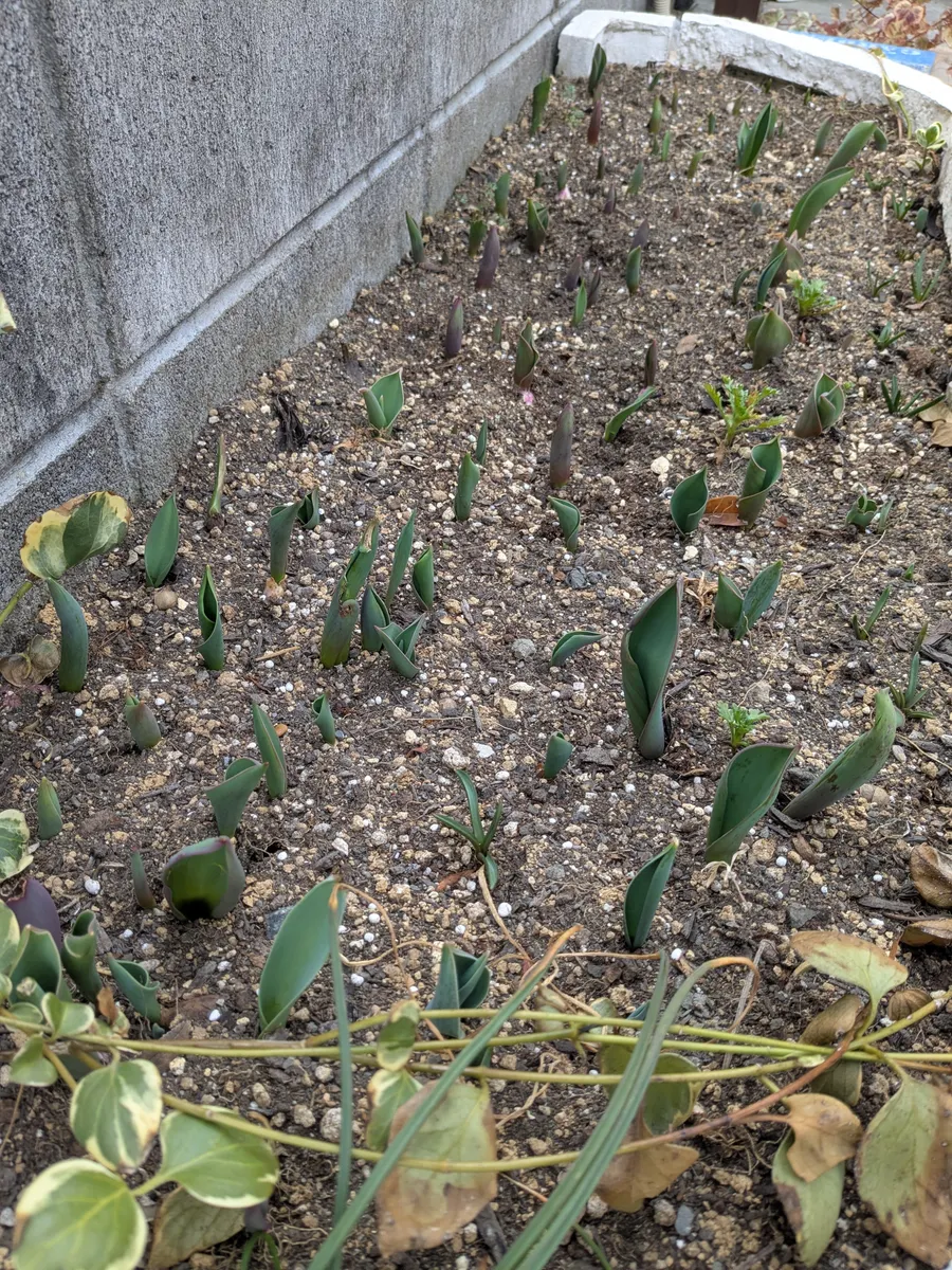 投稿を表示こんなに沢山の芽が!!ちゃんと出てきましたねー。掘り上げ球根全部咲いてくれたらいいなぁ🤗💕