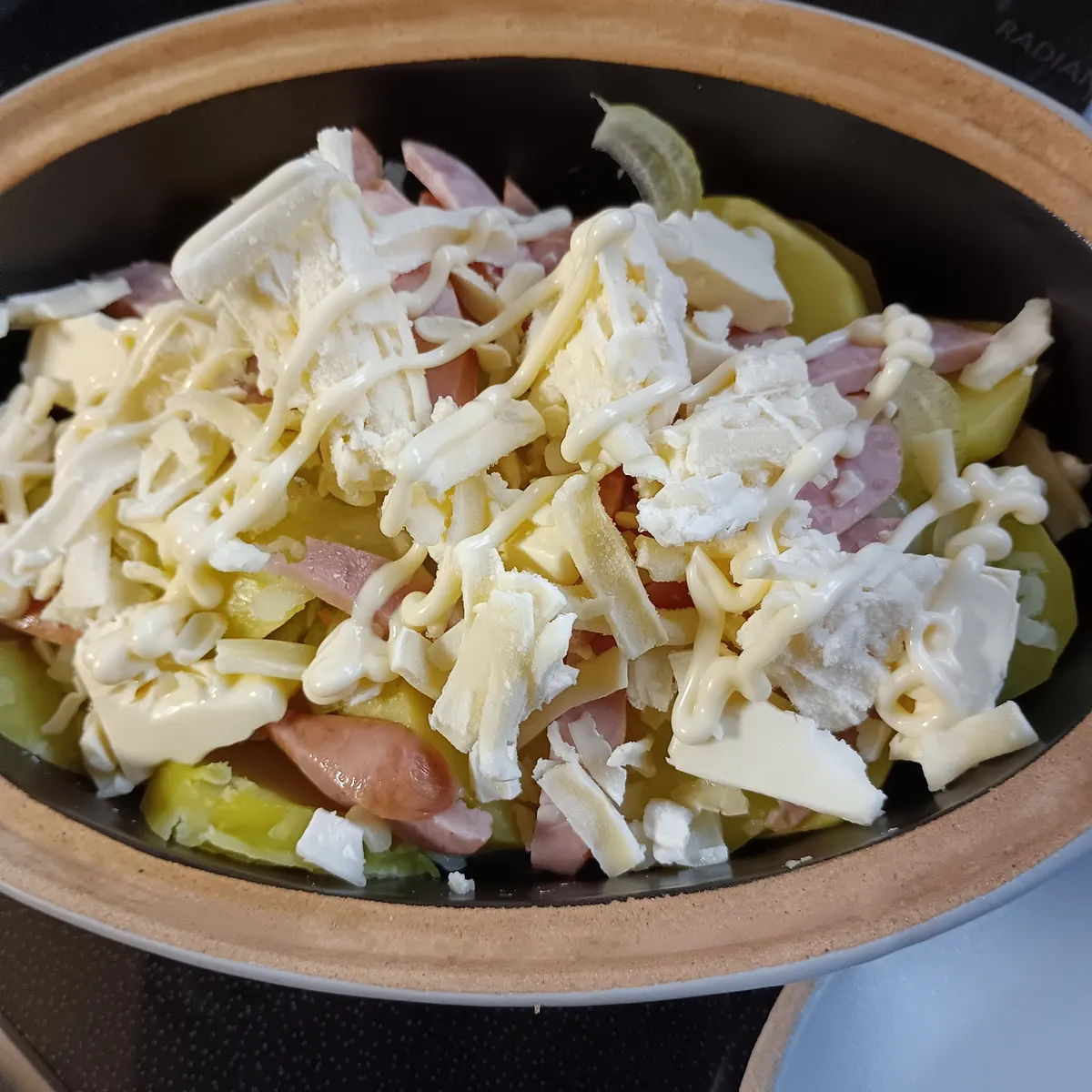 投稿を表示ポテトとチーズとウインナー、そして玉ねぎ、これは絶対美味しいですね😊