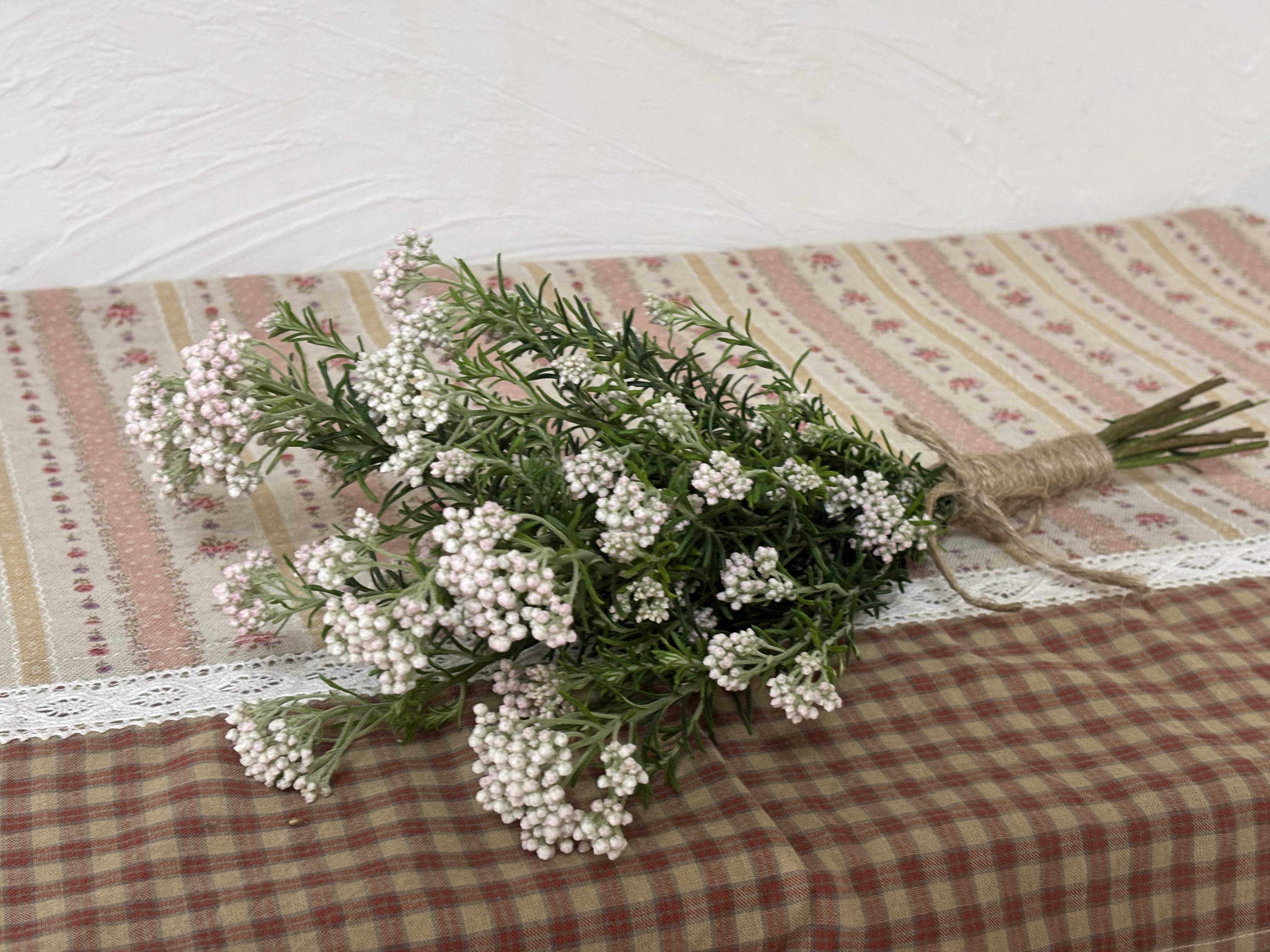 鉢植えのライスフラワーがいい感じになってきたので束ねてスワッグを作りました😆