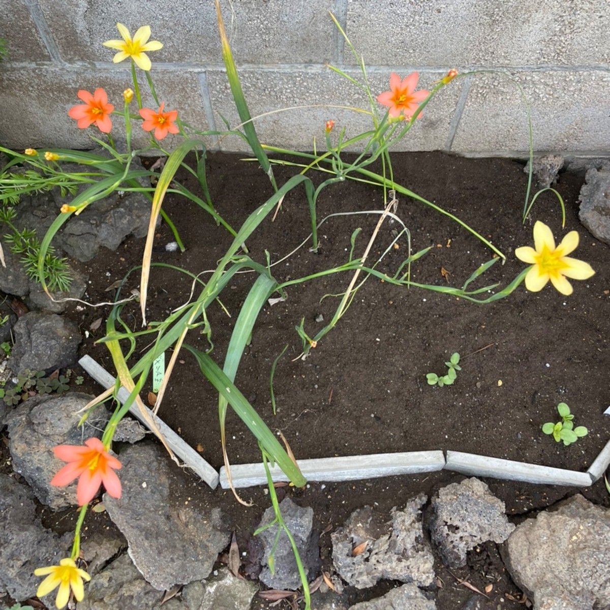 先日投稿の「余った生コンで作るコンクリートバー」を花壇の仕切りにしてます。