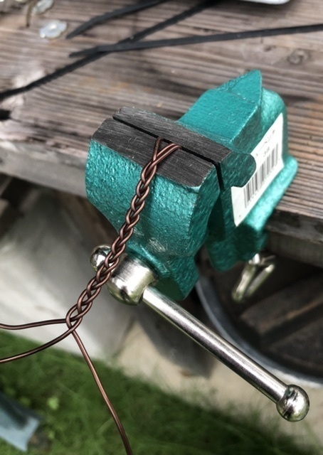 すっかり風化していたプラスチックの持ち手も100均の銅色ワイヤーを三つ編みにしたものに付け替えれば…