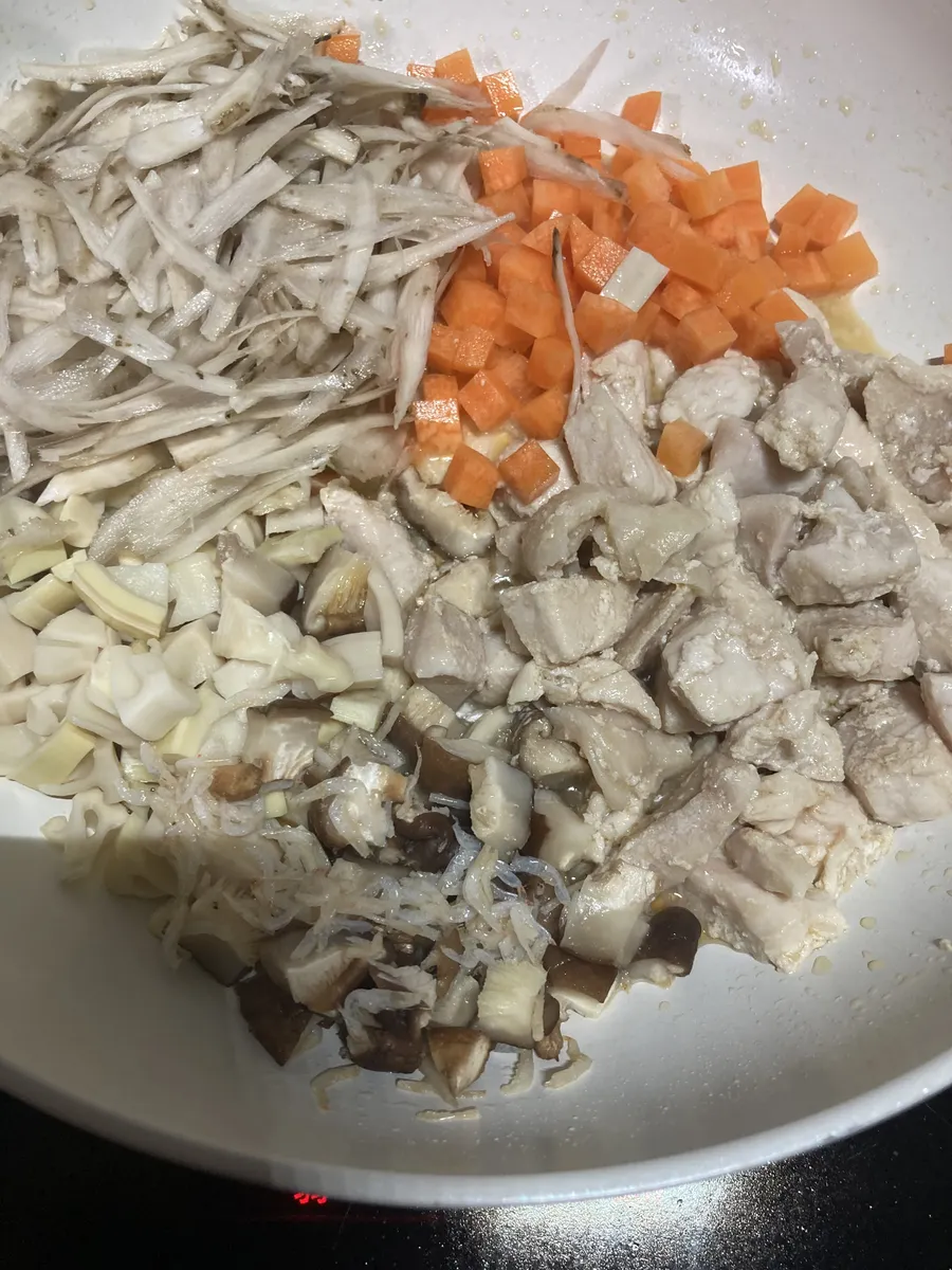 ・干し椎茸、干しエビ(水で一緒に戻しておく)