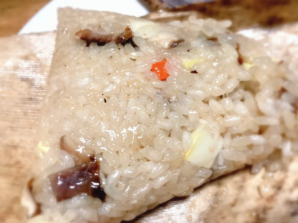 投稿を表示炒めたあとラップに包んでレンチンするレシピは知ってますが、竹皮に包んでウズラの卵も入ると市販品レベルですね❣️
