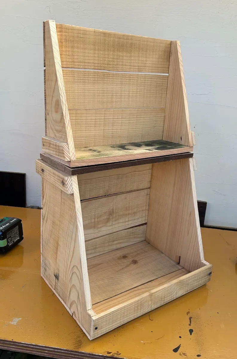 蝶番180度開いて重ねたら2段のディスプレイ棚にもなるし、閉じて使えば収納ボックスの2WAY使いが出来そう😆👍🗃️🗄️✨