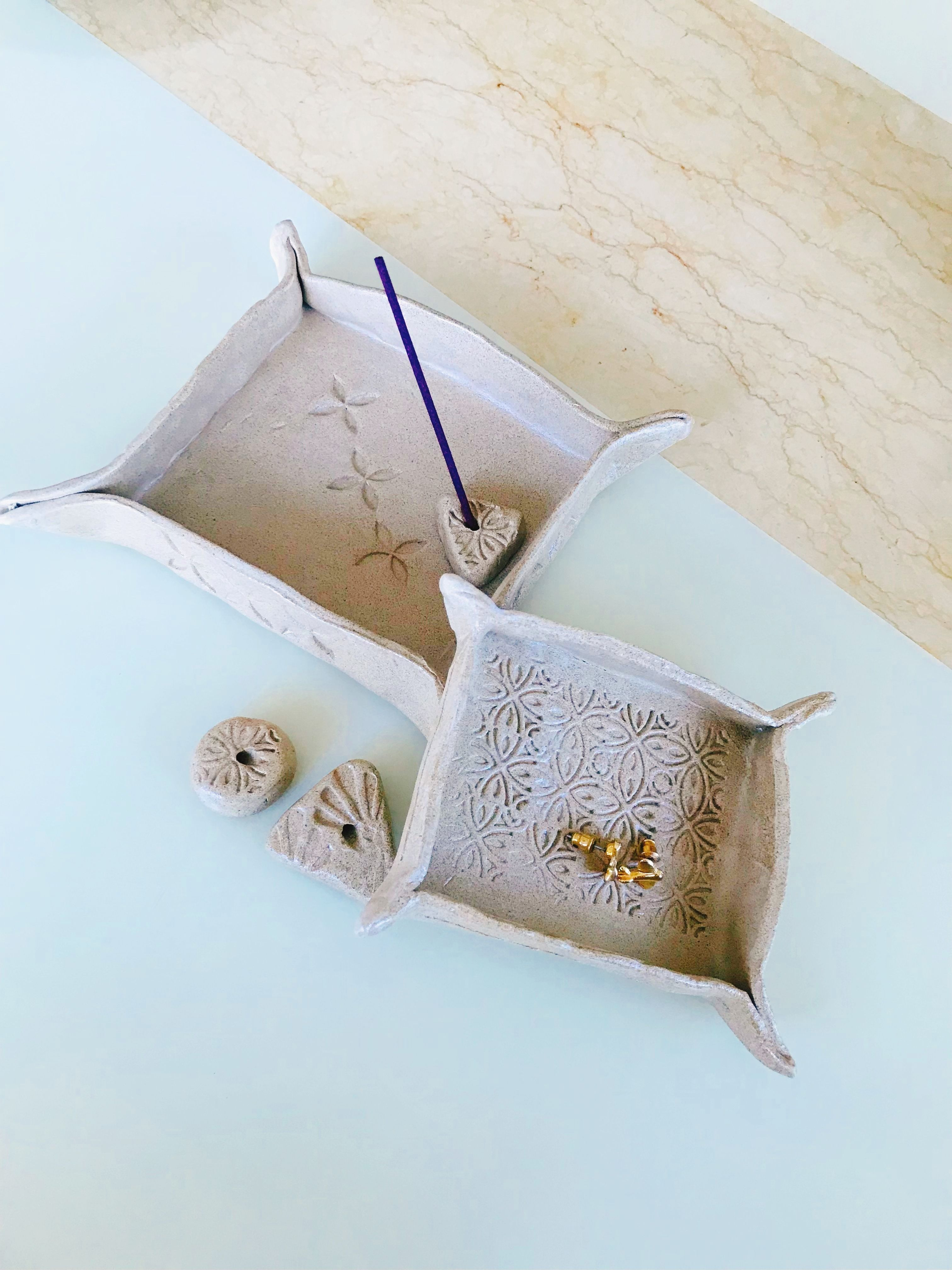 トップ > その他 > 夏のDIY2022 オープン粘土 kokomade 2022/08/18 17:11 夏のDIY2022 オープン粘土 お香たて+アクセサリー入れ オープン粘土は初めてでした♪ 手捻りかと思いきやクッキー作りの様で簡単に楽しく参加させて頂きました!薄くなってしまい割れないか心配しましたが、さすがですね!スタッフの方に焼成をお願いして正解でした。 いいね 共有する 共有する X LINE リンクをコピー コメントする 1 件の返信 (新着順) ミュートしたユーザーの投稿です。 投稿を表示 あいぼん 2022/08/18 23:04 わぁ😍とても素敵ですね~👍️四角い作品ははじめて見ました❗お洒落です✨ いいね 返信する ミュートしたユーザーの投稿です。 投稿を表示 kokomade 2022/08/19 00:09 あいぽんさん、ありがとうございます! 縮むことなく焼けたので、置きたい棚に合った大きさで作れて満足です。是非作ってみて下さい⭐︎ いいね 返信する