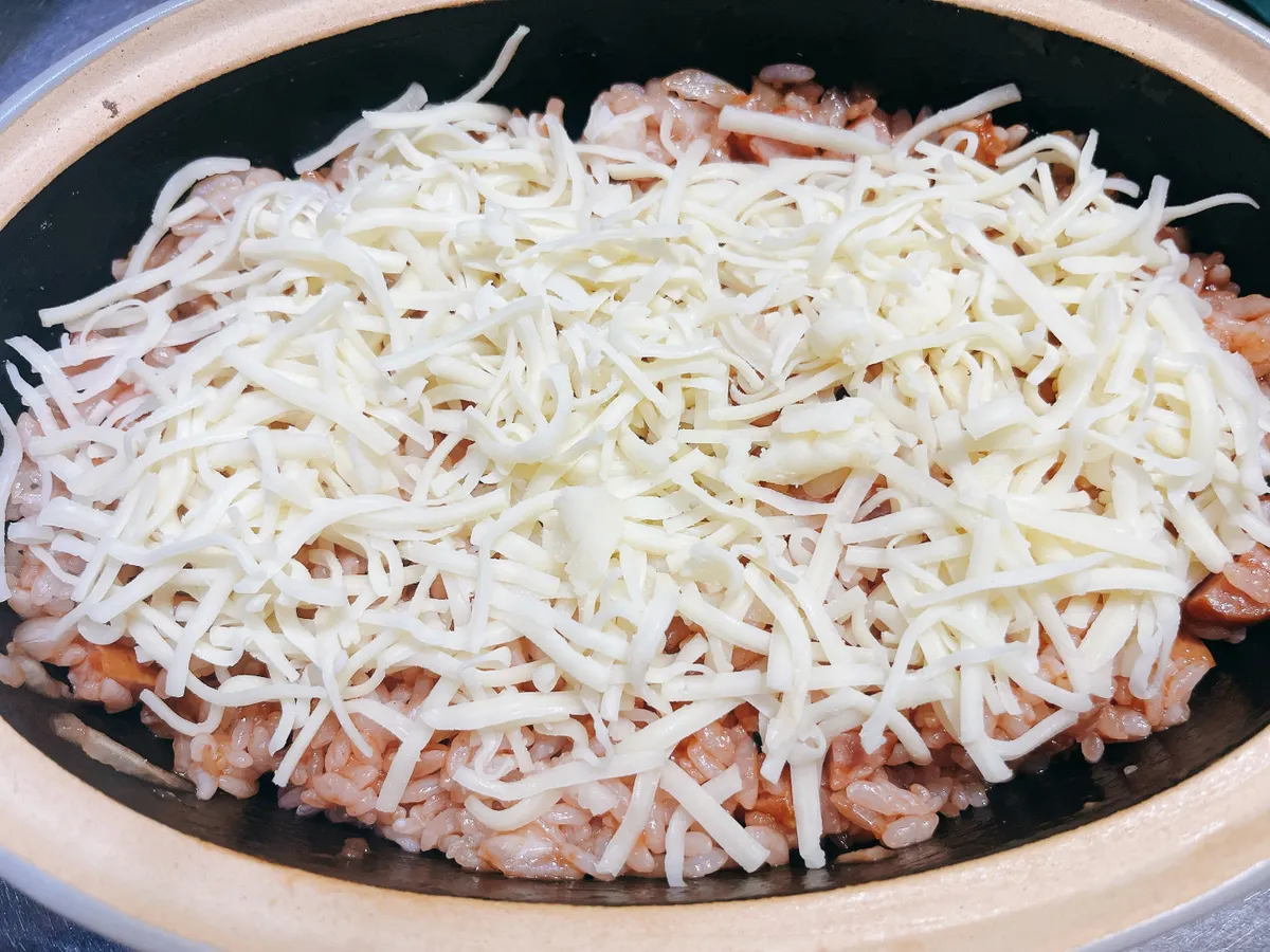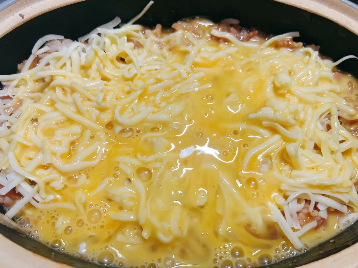 全体が混ざったら、平らに整えてとろけるチーズをかける。