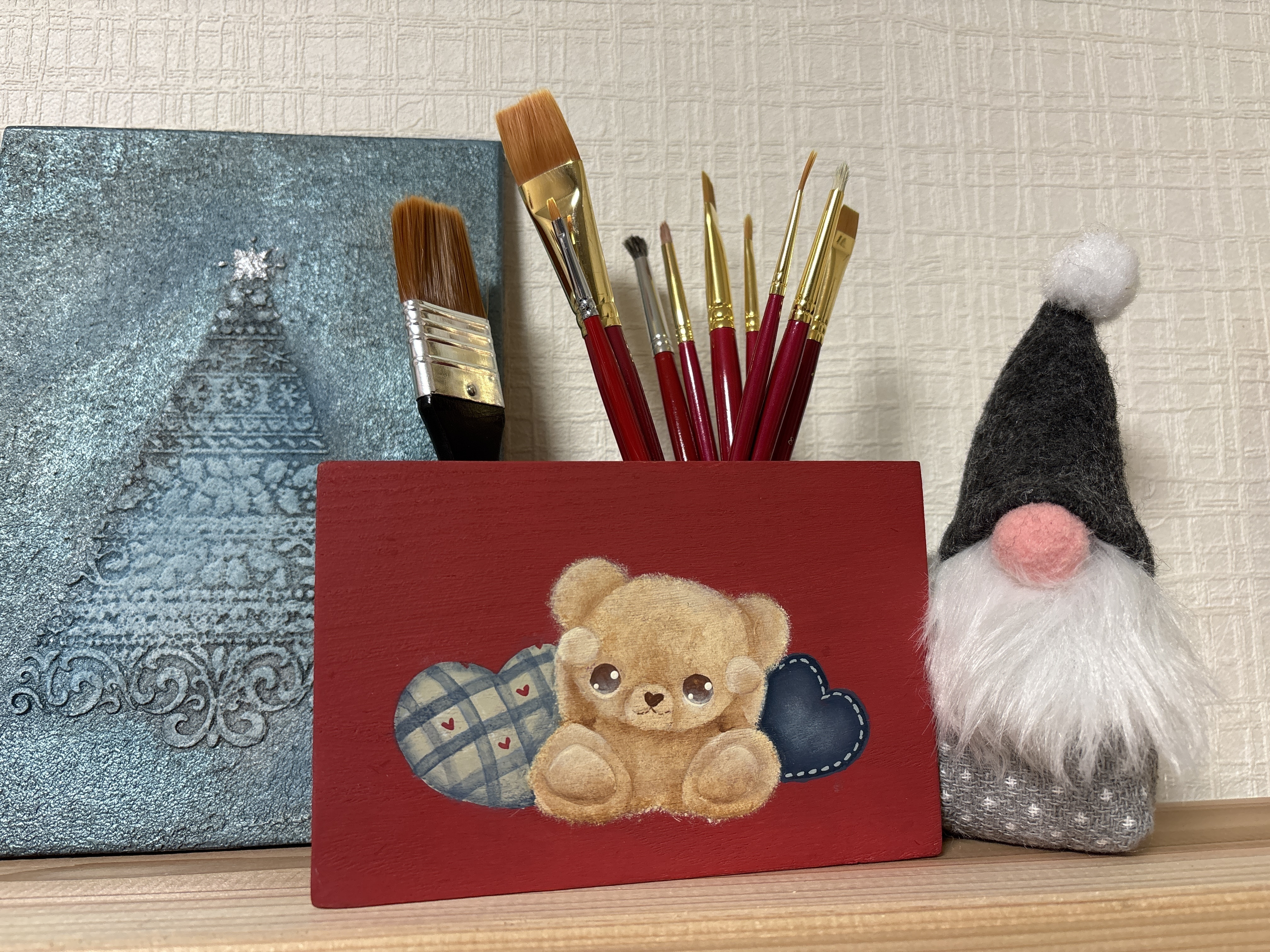 トップ > DIY > ハンドメイド > トールペイントで筆立て やこ 2025/12/16 15:30 トールペイントで筆立て トールペイントの教室に通いはじめて来年3月で1年になります。1ヶ月に1回(2時間)なので作品としては少ないですが筆が増えていきました この度トールペイントの筆立てを作りました 目の大きさが左右異なってしまい、どうなるのかやり直したり不安🫨でしたが、白のドットを入れたらなんとかくまちゃん🐻になっていきました。 いろいろ反省点はいっぱいありますが完成です いいね 共有する 共有する X LINE リンクをコピー コメントする 5 件の返信 (新着順) ミュートしたユーザーの投稿です。 投稿を表示 ダンボ 2025/12/18 17:52 とても可愛いですね! いいね 返信する ミュートしたユーザーの投稿です。 投稿を表示 やこ 2025/12/18 22:06 ダンボ ありがとうございます😊 ふわふわの毛並みのくまさん とっても可愛くって大好きです いいね 返信する ミュートしたユーザーの投稿です。 投稿を表示 🐰 さ び う さ 🐰 2025/12/18 10:01 昔、トールペイント、ハマってました🤭何十年も前なのに、絵の具が固まらず まだ使えて、自分でもビックリしています😆 やこさんのこの作品は、 くまがいなおみさんの図面かな? トール、楽しんでね💖 いいね 返信する ミュートしたユーザーの投稿です。 投稿を表示 やこ 2025/12/18 11:33 🐰 さ び う さ 🐰 コメントありがとうございます😊 DIY(カインズ)が好きな方って何かしら習っていらっしゃいますね🤗 かまがいなおみ先生のデザインです。 先日ネットで先生の本を購入したのですが、同じものを2冊購入していて、自分のやらかしに呆れるばかりです😅 いいね 返信する ミュートしたユーザーの投稿です。 投稿を表示 🐰 さ び う さ 🐰 2025/12/19 09:17 やこ 『自分のやらかし』…え、そんな事ないですよ😊上手です💖👏👍 いいね 返信する ミュートしたユーザーの投稿です。 投稿を表示 とぴ 2025/12/17 17:56 くまさんのフワフワした感じとか、細かな塗り分けが凄い🧸💕 トールペイントの筆も色々あるんですね😲 初めてみました✨🖌️ いいね 返信する ミュートしたユーザーの投稿です。 投稿を表示 やこ 2025/12/17 23:15 とぴ ふわふわした感じ可愛いですよね💕 これが好きなんです😊 指示書通りにやっているので、私が凄いわけではないのです😅 長年トールペイントをされている方の筆の量はハンパないですよ! 教室に行くたびに1本か2本増えていますね!いつまで続くのでしょう?!ね いいね 返信する ミュートしたユーザーの投稿です。 投稿を表示 りお 2025/12/17 12:21 一年でこれはすごい! 可愛いくまさんです 最近は怖いくまの話題ばかりなので こんな可愛いくまさんに癒されます いいね 返信する ミュートしたユーザーの投稿です。 投稿を表示 やこ 2025/12/17 13:41 りお そうですね! くまの話題多かったですね デザインが素敵なので どなたが描いても可愛いくまちゃんになるのだと思います。 私のくまちゃんは先生の技の一筆二筆? いやもっとたくさん入っています。 いいね 返信する ミュートしたユーザーの投稿です。 投稿を表示 Tagさん 2025/12/16 17:48 くまがいなおみ先生のくまちゃんですよね~💕このくまちゃん可愛くて私も習って描いたことありました懐かしい❗❗スッゴク可愛く掛けてますよ♥♥♥ いいね 返信する ミュートしたユーザーの投稿です。 投稿を表示 やこ 2025/12/16 19:09 Tagさん ありがとうございます😊 可愛くかけてるってTagさんのコメント頂いて とっても嬉しいです😃 思う様に筆で描けなくて、、 いつも教室でぶつぶつ言っているのです😅 いいね 返信する