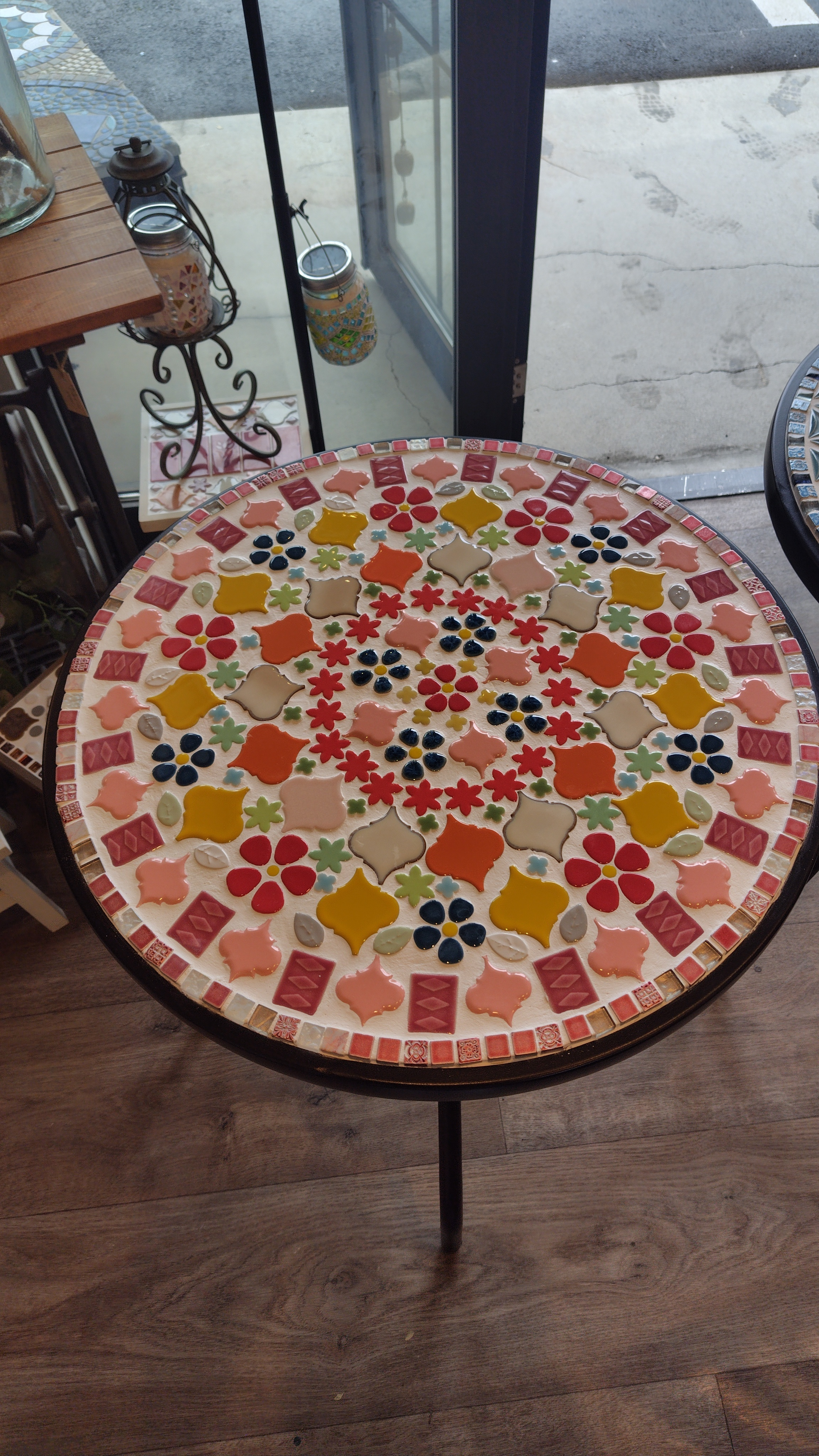 お花の形などいろんなタイルが使われてて華やかなテーブルで、使うのが楽しみですね☺️