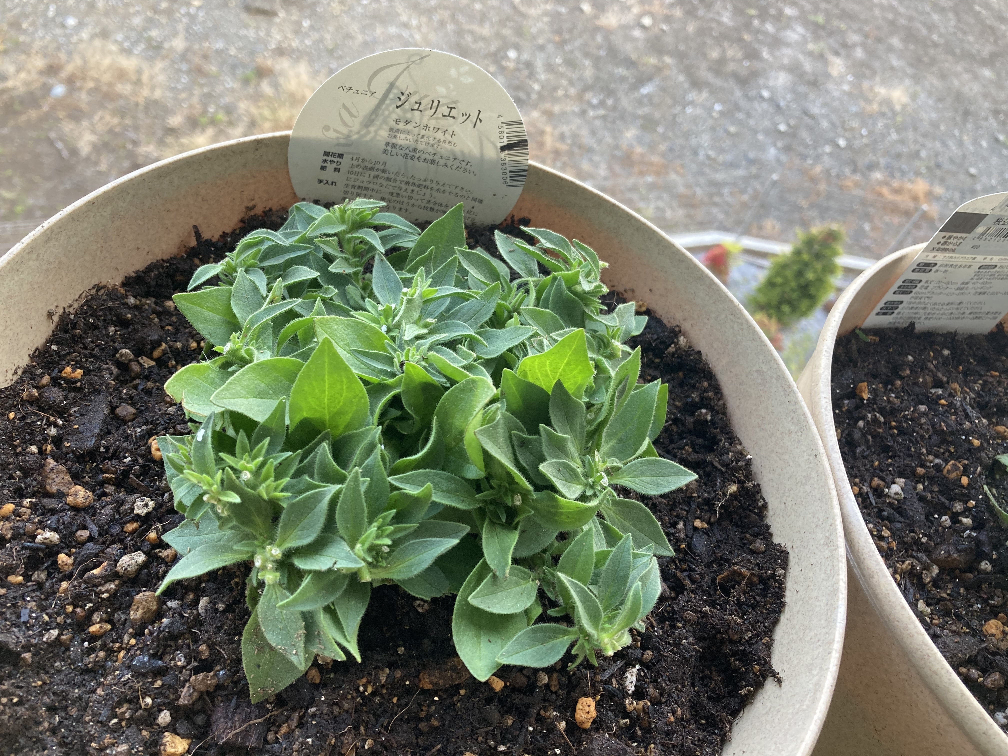 ペチュニアはかなりシックな色味で色選びは迷いに迷いホワイトを。