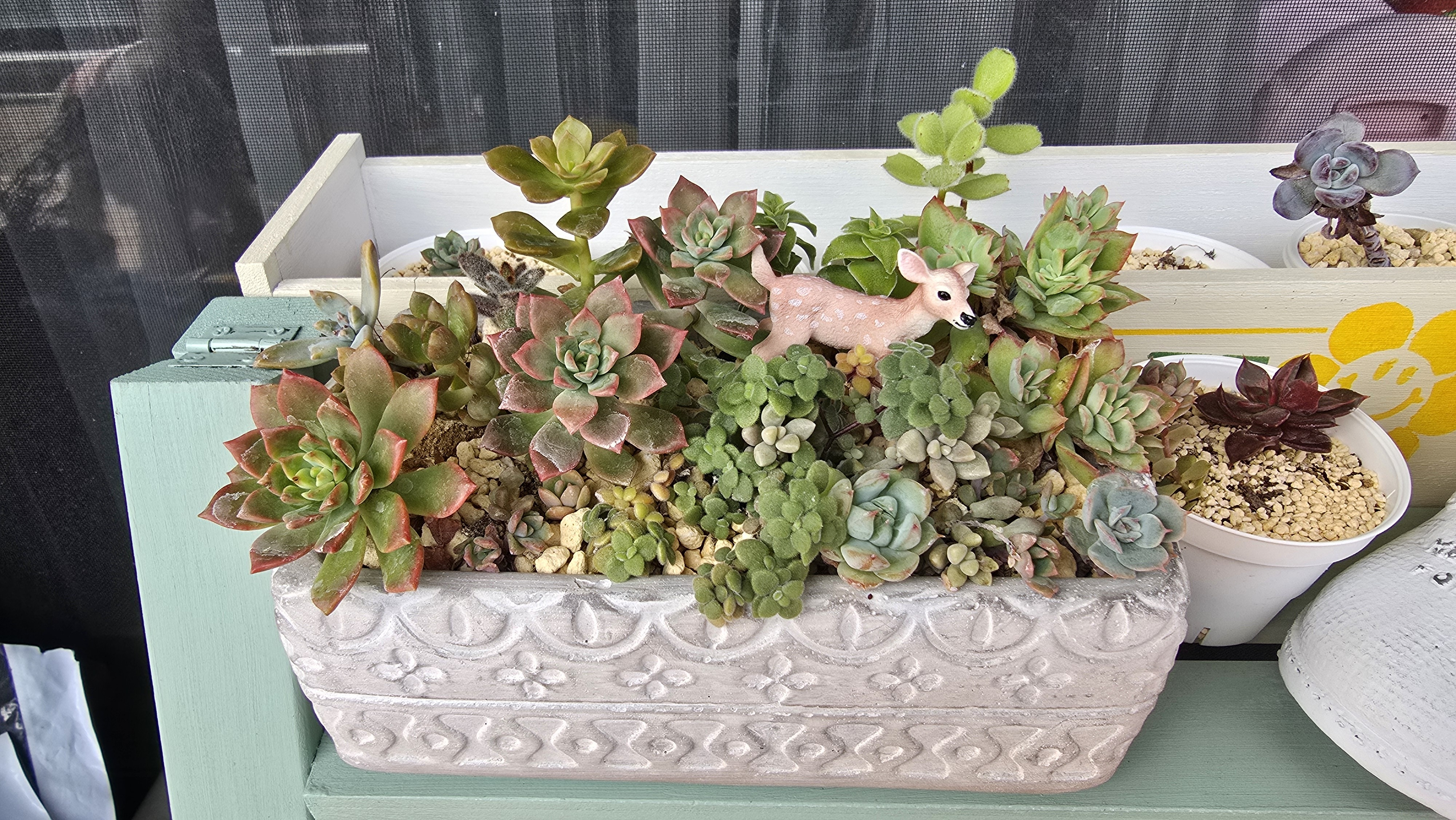 ベランダガーデニング(多肉植物の寄せ植えwithバンビ💕のその後♪)