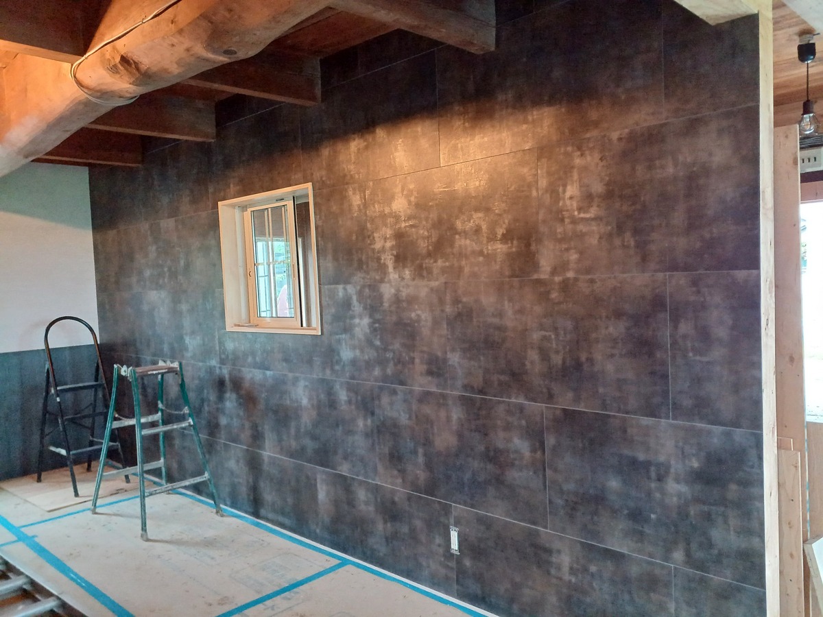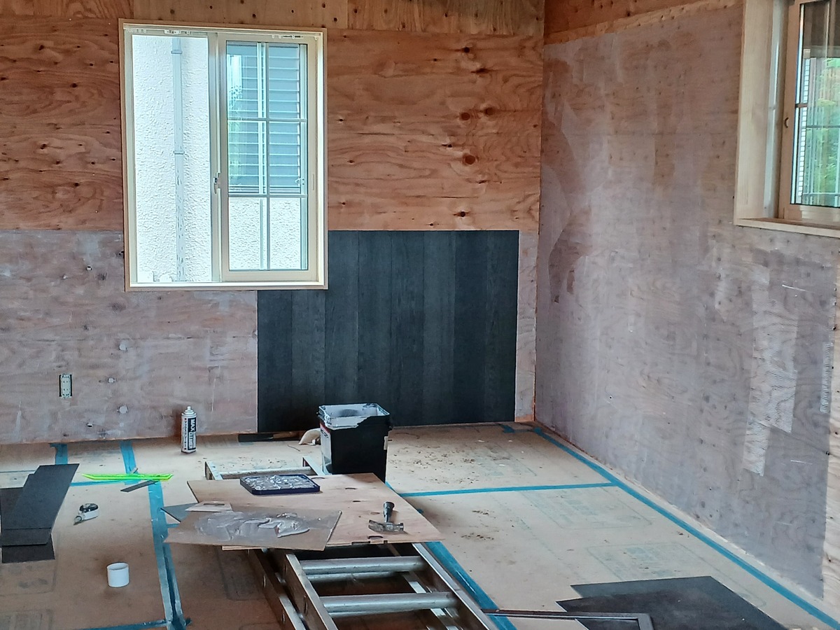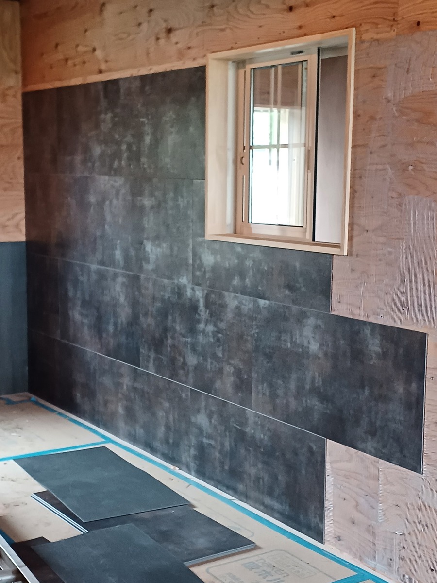 最初は木目調の板風ブラックを縦に❗