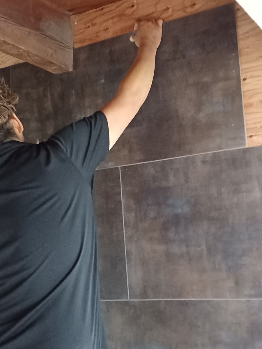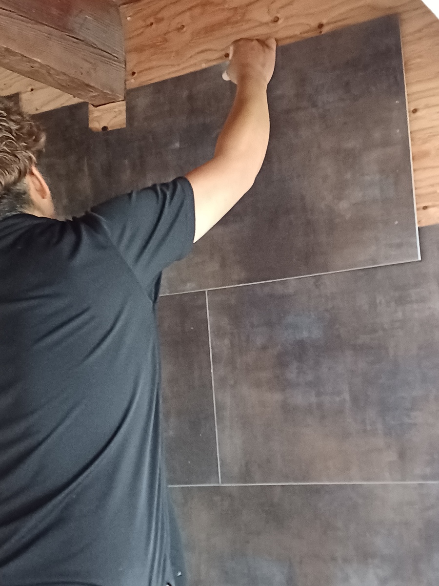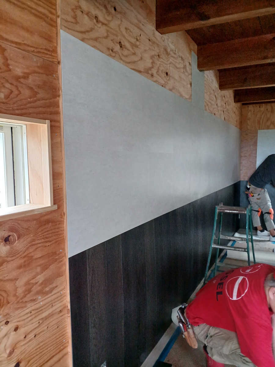 最初は木目調の板風ブラックを縦に❗