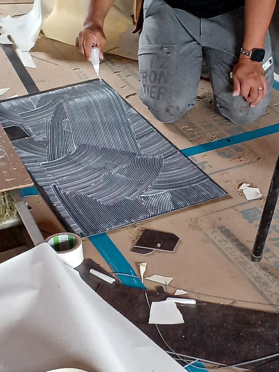 型紙に合わせてカッターで切り切り!