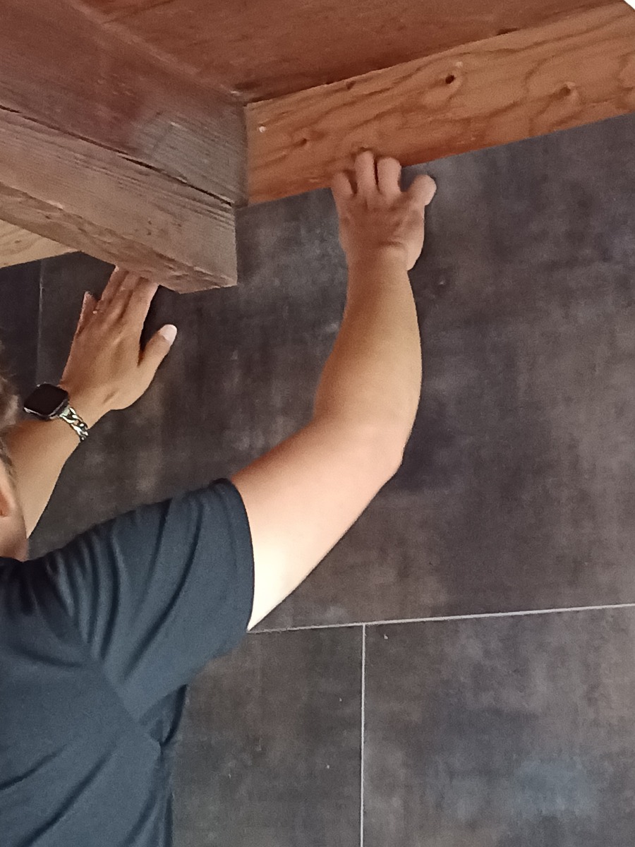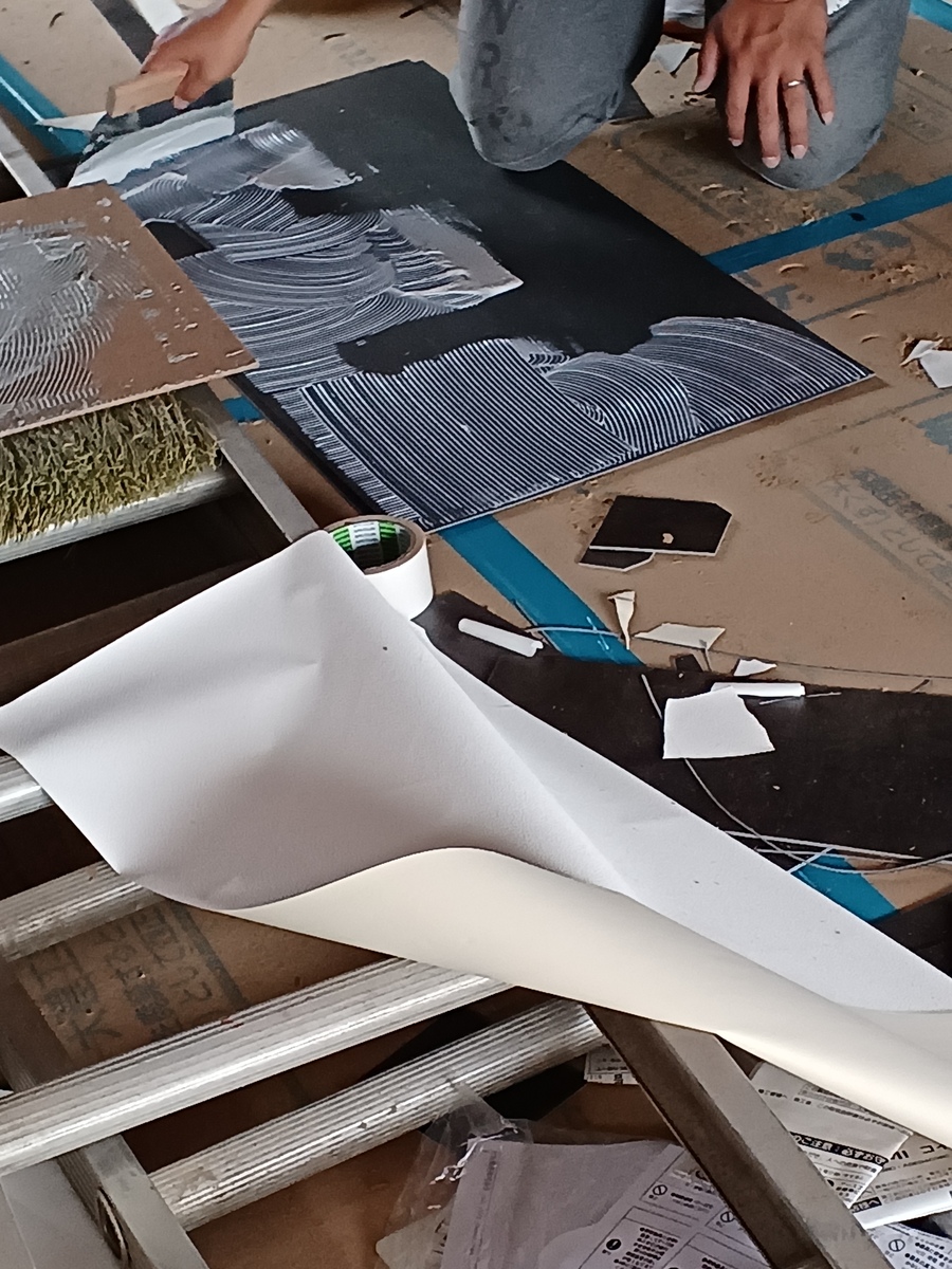 木目調のブラックの上に少しグレーの模様が入っているホワイトを貼ります🎵
