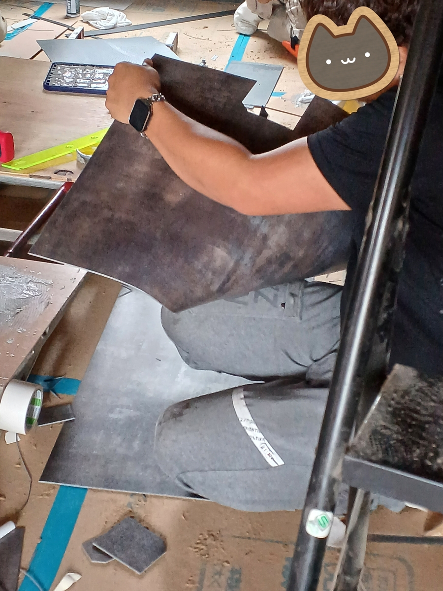 なるほど〜重さのあるクッションフロアーを縦に貼るんですもんね。