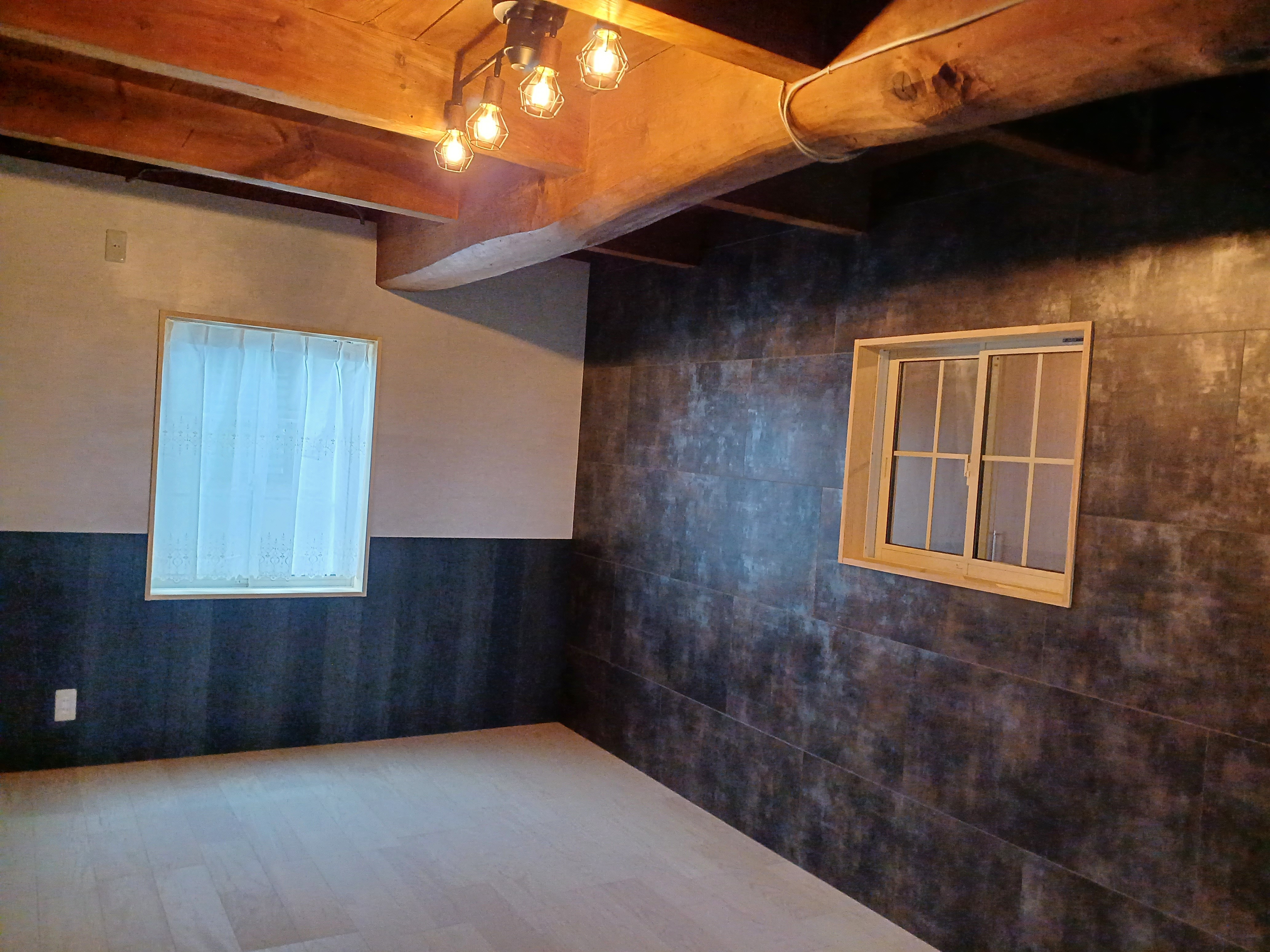 部屋の二面の下はこの木目調で