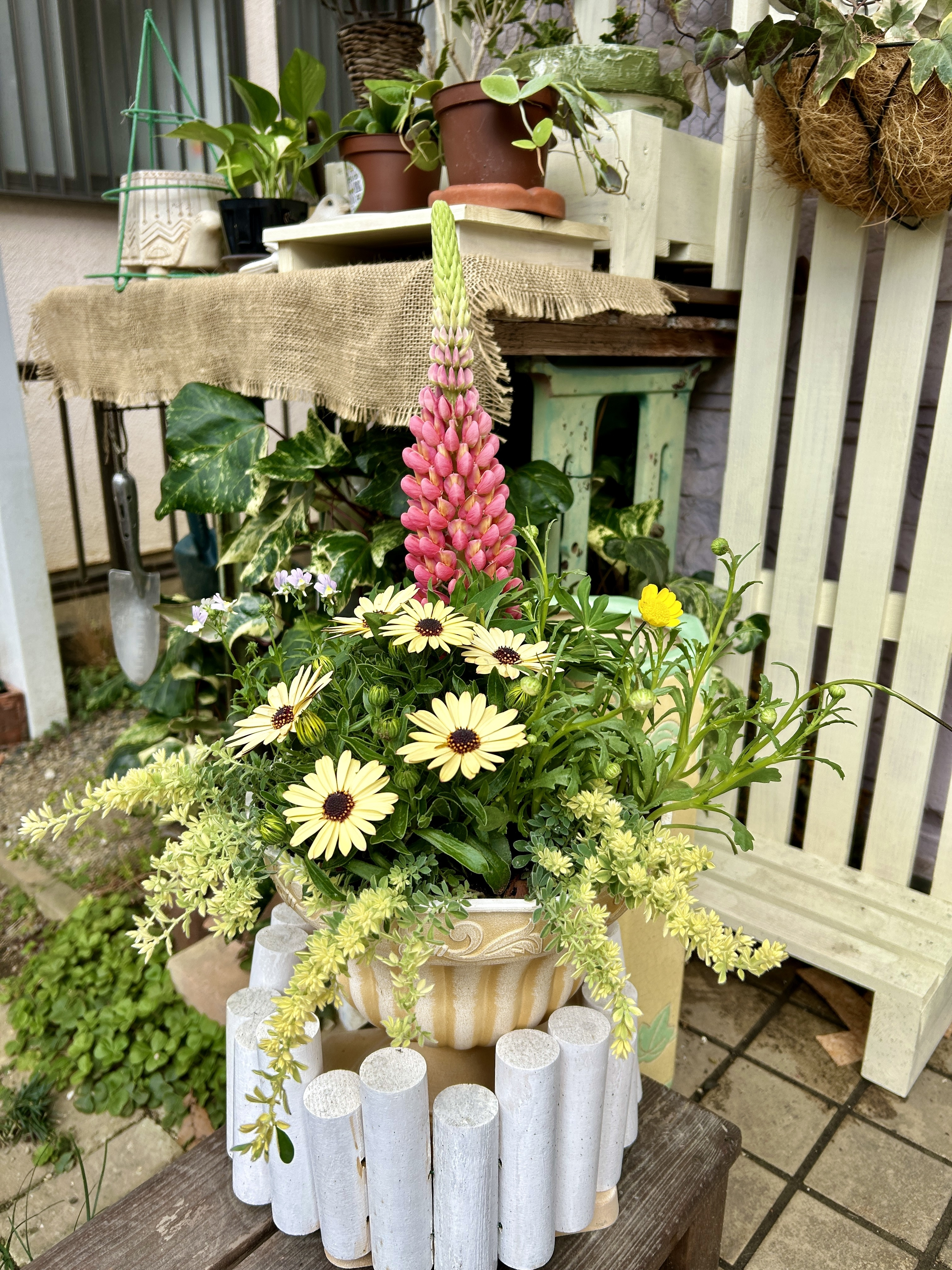 投稿を表示見事なルピナスと可愛いオステオスペルマムの寄せ植え、素敵ですね✨