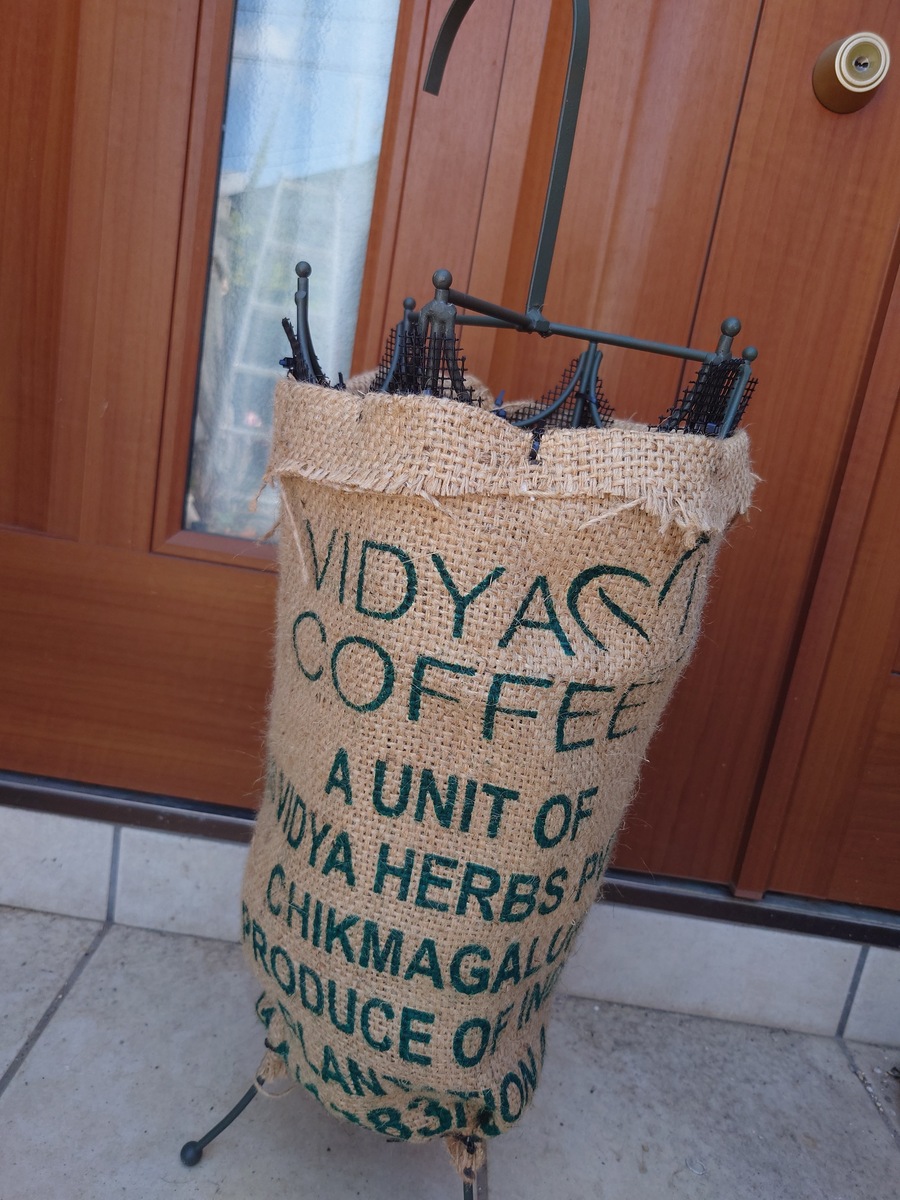 コーヒーのジュート袋でカッコいい仕立てになったねぃ😆☂️☕️👍✨
