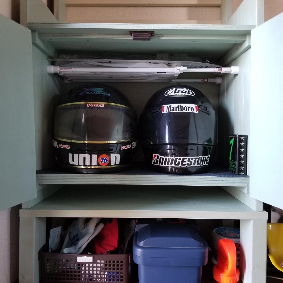トップ > DIY > インテリア > 踏み台風収納 和ちゃん 2022/12/09 12:06 踏み台風収納 2×4材と集成材で踏み台風収納を作りました。色は、撥水のダスティグリーンと水を2対1で割って塗りました。 この上にベランダ収納庫を置きます。 ベランダ収納庫を置きました。ベランダ収納庫の中 いいね 共有する 共有する X LINE リンクをコピー コメントする 1 件の返信 (新着順) ミュートしたユーザーの投稿です。 投稿を表示 ぱみこ 2022/12/09 13:12 ベランダ収納、もうちょっと高さがあったらもっと便利だなーと思います。 これもいいですね! わたしもいつか作れる日が来たら、参考にさせていただきます😊 中は、ヘルメットが二つ収まるんですね。 いいね 返信する ミュートしたユーザーの投稿です。 投稿を表示 和ちゃん 2022/12/09 18:30 ぱみこさん コメントありがとうございます😆 ベランダ収納庫の下の部分の高さがあまりない為、工具箱等が入らなかったので、これを作ってみました😁✨ ただ、収納庫の上部が使いにくいかもしれません💦 いいね 返信する