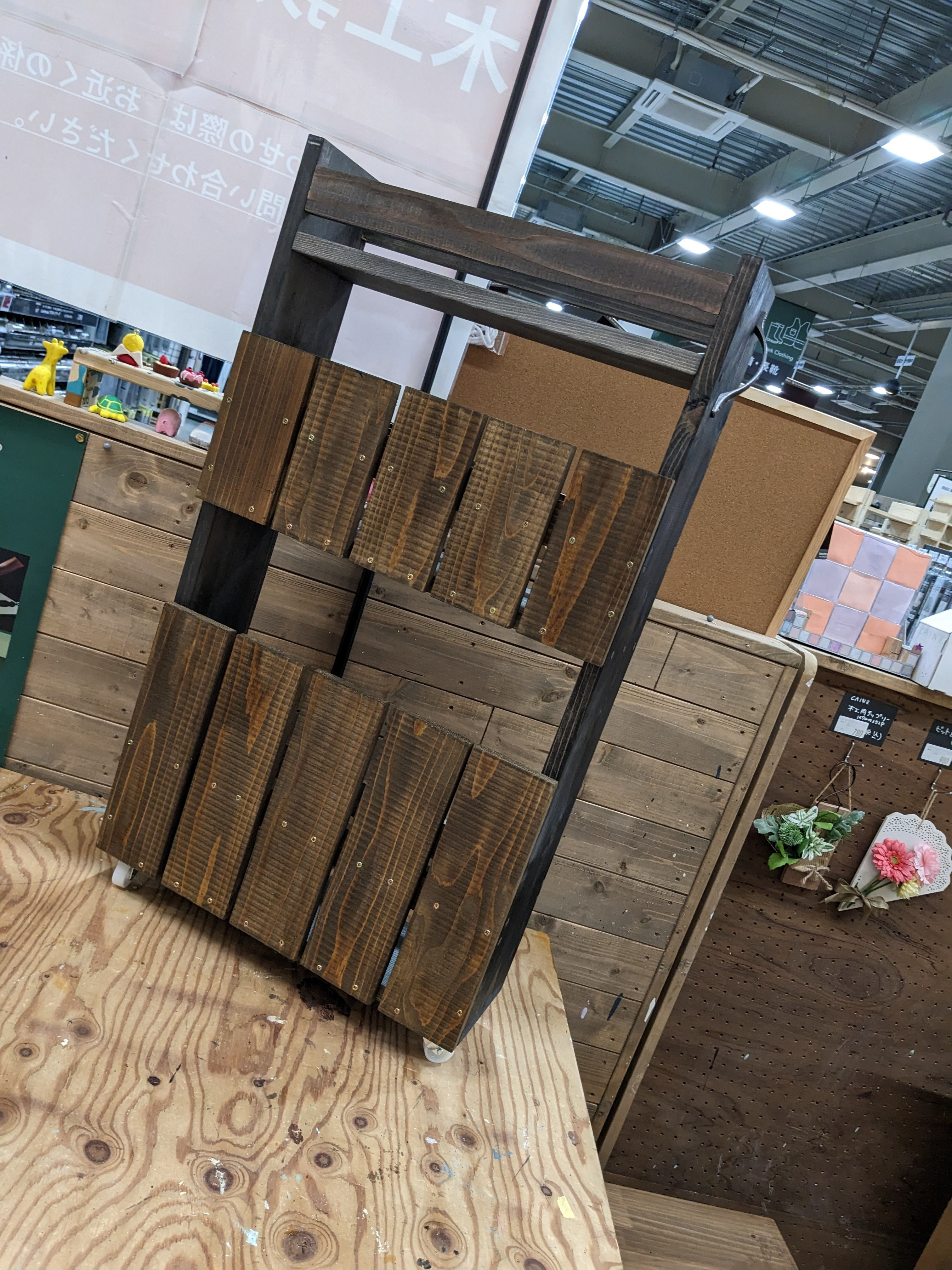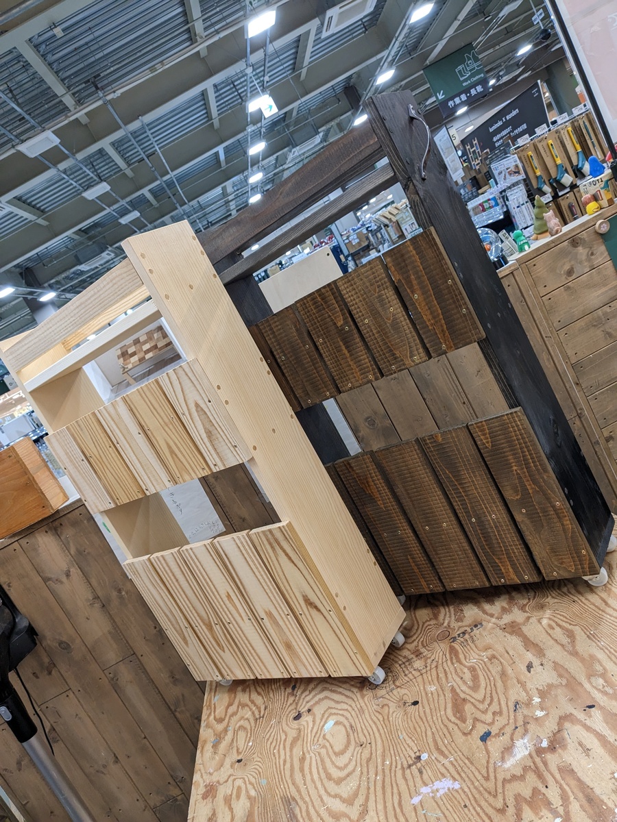 トップ > DIY > インテリア > 隙間ワゴン みんと 2022/12/20 17:33 隙間ワゴン 昨日はまちに待った隙間ワゴンのWS。 マッキーさんともご一緒できて楽しい一日になりました。 途中、節があったため板が割れるアクシデント💦 慌てて新しい板に塗装している間にダボ埋めをしていたのに、ビスをまだ打っていない穴にまでダボを打ってしまうというダブルアクシデント。 でもアドバイザーさんのお陰でなんとかリカバリーできました。 マッキーさんの作品と一緒に♥これをみているともう1個作りたくなる〜。アドバイザーさん、ご一緒した方たちに感謝です✨ いいね 共有する 共有する X LINE リンクをコピー コメントする 3 件の返信 (新着順) ミュートしたユーザーの投稿です。 投稿を表示 べるん 2022/12/21 09:33 色々なアクシデント大変でしたね💦 とても綺麗な仕上がりで、使うのも楽しみですね🎶 いいね 返信する ミュートしたユーザーの投稿です。 投稿を表示 みんと 2022/12/21 13:32 べるんさん、WSにアクシデントはつきものですね。 しかし!アドバイザーさんのお陰ですぐにリカバリーできました〜🎵 いいね 返信する ミュートしたユーザーの投稿です。 投稿を表示 マッキー 2022/12/21 00:21 みんとさん こんばんは😊 月曜日はお疲れさまでした。 お互い色々あったわりには、わりかし早く終わったよね😍✨ そうなんですよ、2個目が欲しくなるんですよ💕 近場であったら是非是非🤭 楽しかったです💕 うさちゃんのペーパー、ありがとうございました🙏 いいね 返信する ミュートしたユーザーの投稿です。 投稿を表示 みんと 2022/12/21 06:43 マッキーさん ほんと楽しかったね🎵 いつかもう一個作れたらいいな。 いいね 返信する ミュートしたユーザーの投稿です。 投稿を表示 Toko 2022/12/20 18:49 ミントさん色々ハプニングありのWSでしたね、お疲れ様でした。 でもステキに仕上がりましたね、色もみんとさんらしい色の組み合わせ。😊 早速お家で活躍中かな。 いいね 返信する ミュートしたユーザーの投稿です。 投稿を表示 みんと 2022/12/20 19:03 Tokoさん、ありがとうございます。 お気に入りができました。 このあと、できればニスを塗ってから使いたいので保留中です。 いいね 返信する
