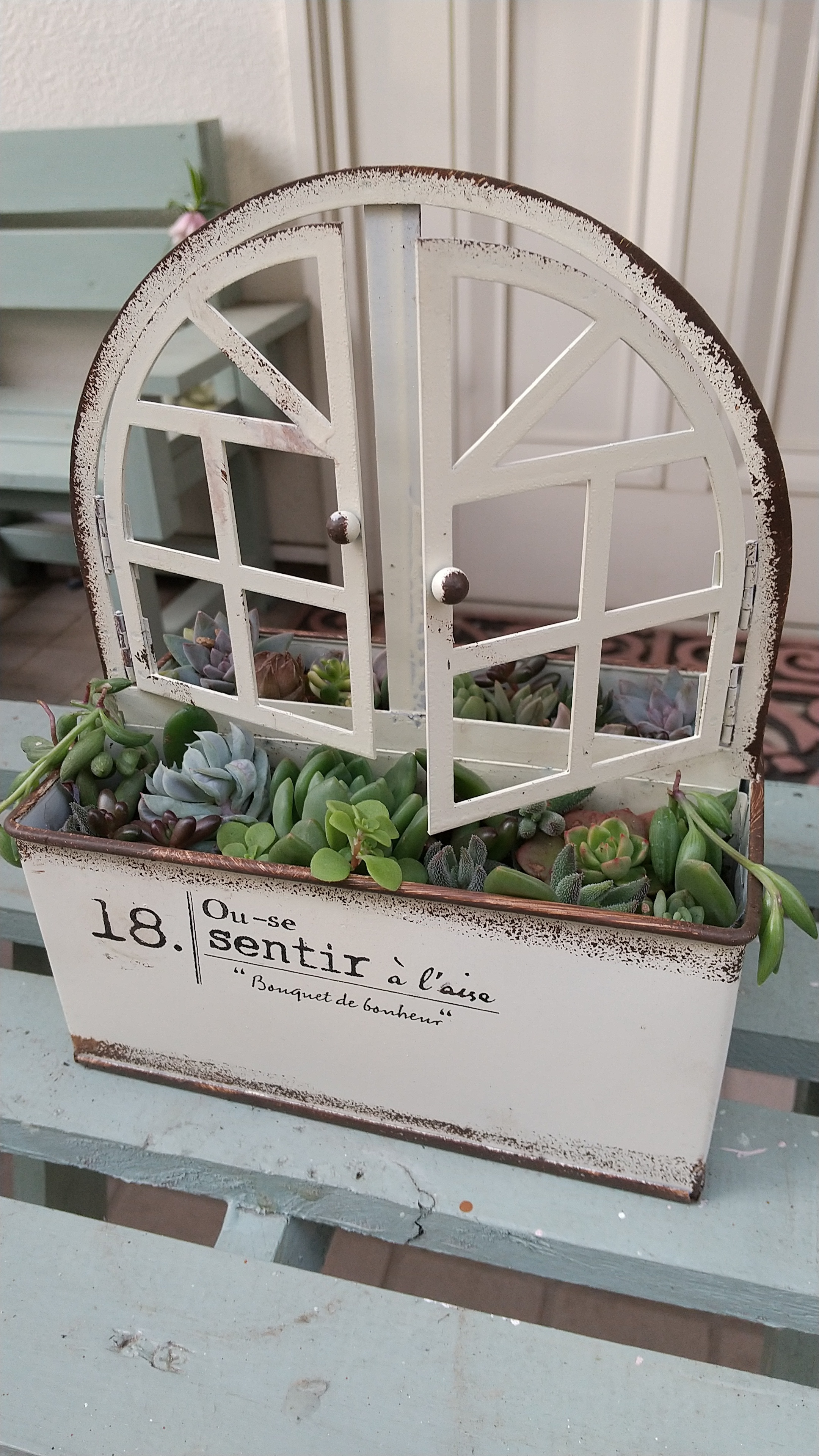 多肉ちゃんの寄せ植え容器まで、すてきですね✨ヽ(´ω`)ノ