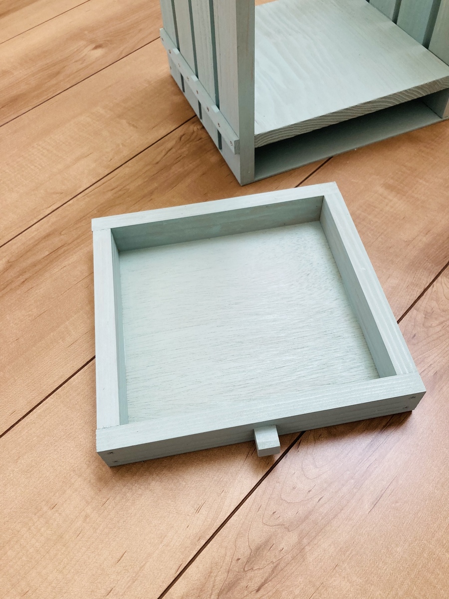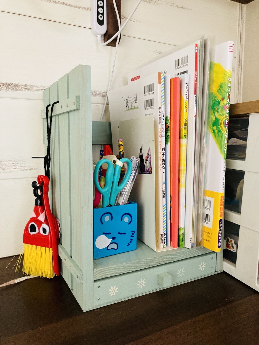 今回の作品は娘の教科書などを立てるためだったので、色を事前に聞いたところ、夏休みに作ったジュエリーBOXと同じがいい❣️とのことだったので、ダスティーグリーンにしました✨
