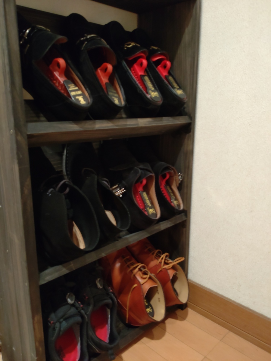 革靴、せっせと磨いて床にしばらく乾かしてあるので場所とられて困ってます🥲