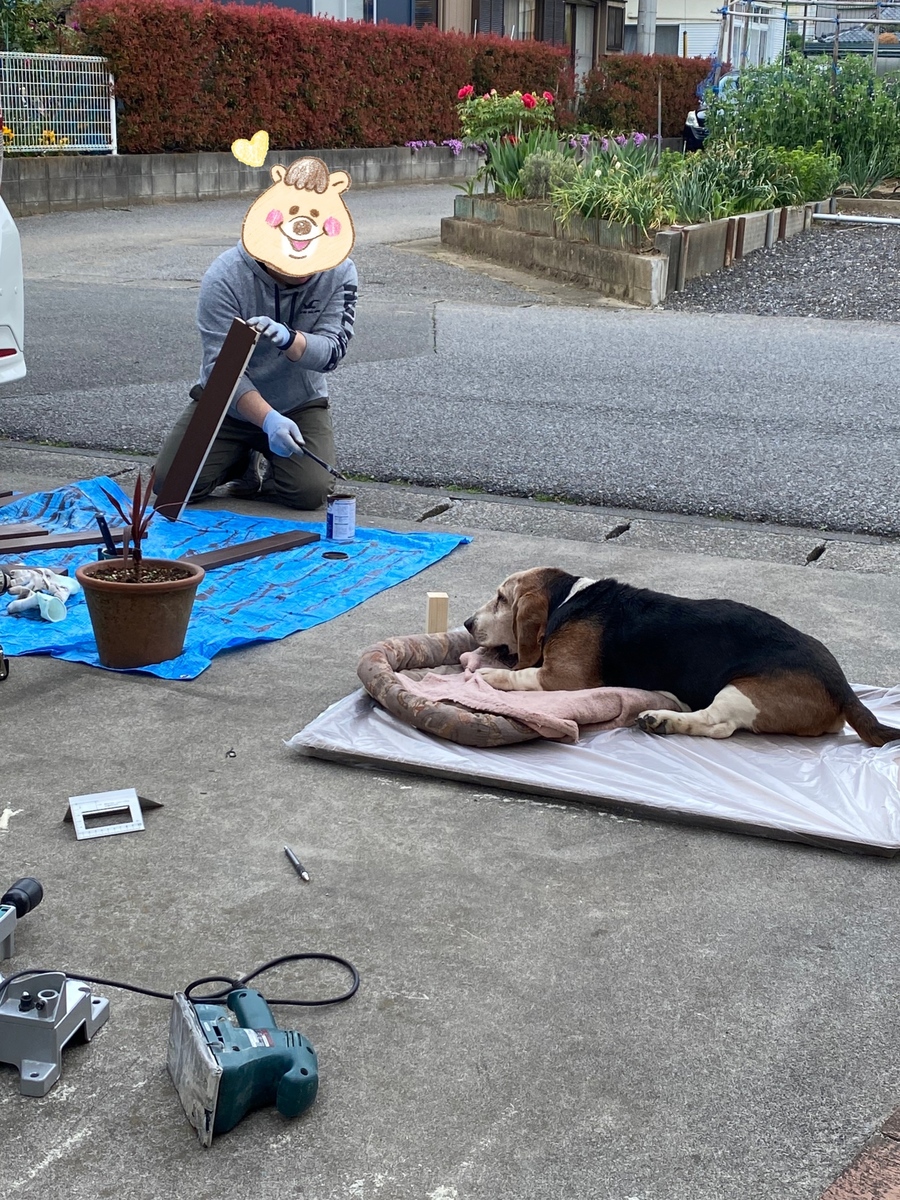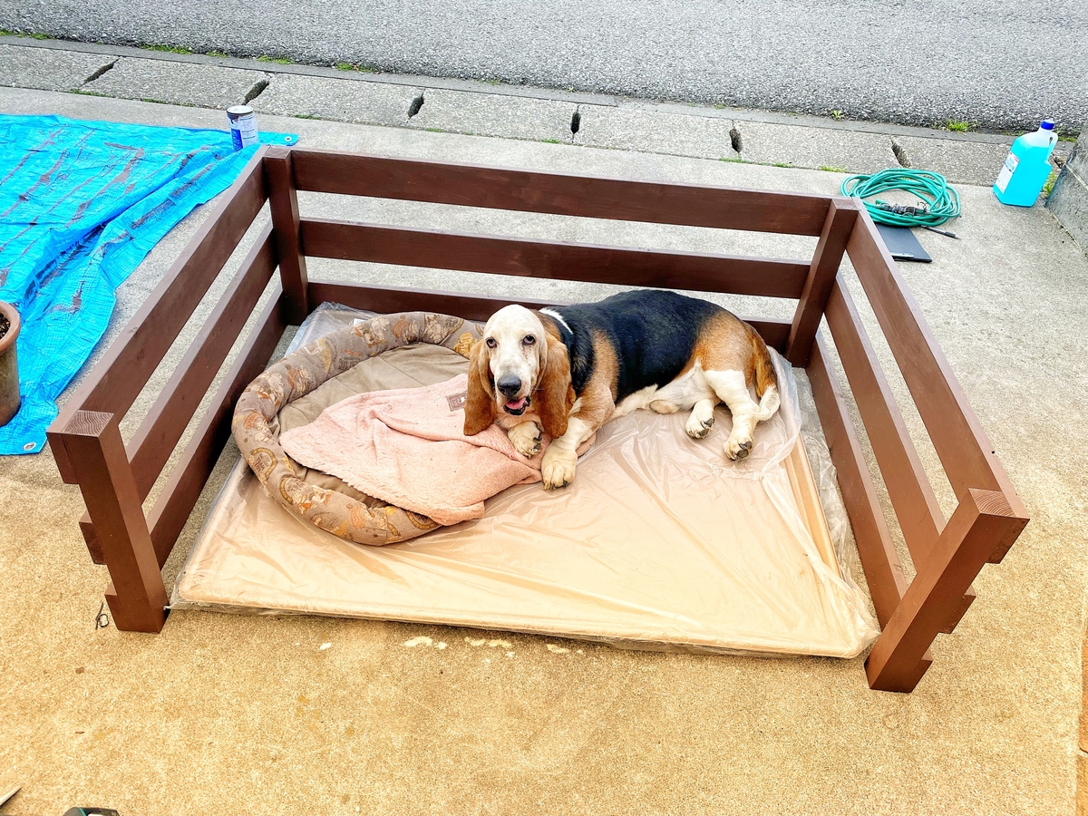 実家では外で飼っていたので、デッキに大きな犬小屋を設置。