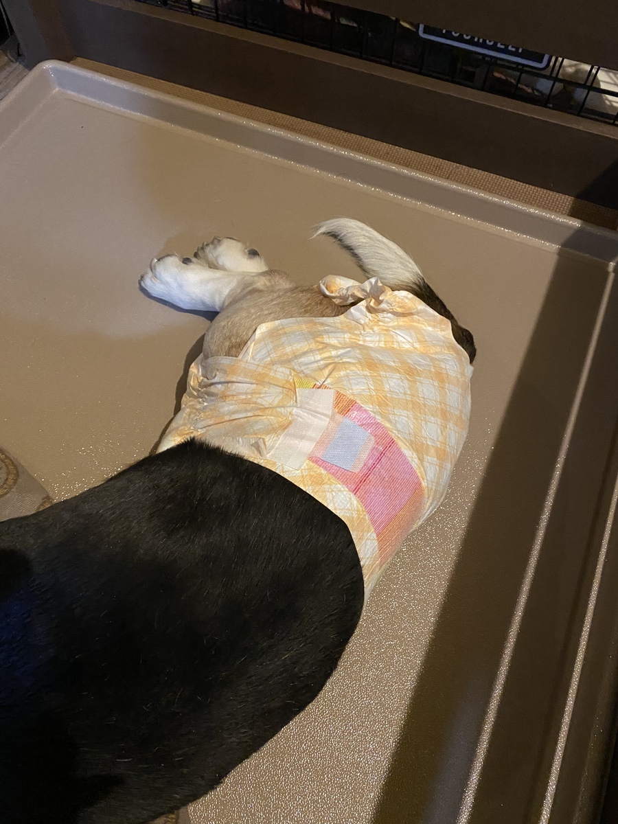 オムツさせても長細い体をしてる為、汚してしまい、今朝はマナーホルダーを買いに朝イチ行ってきました。