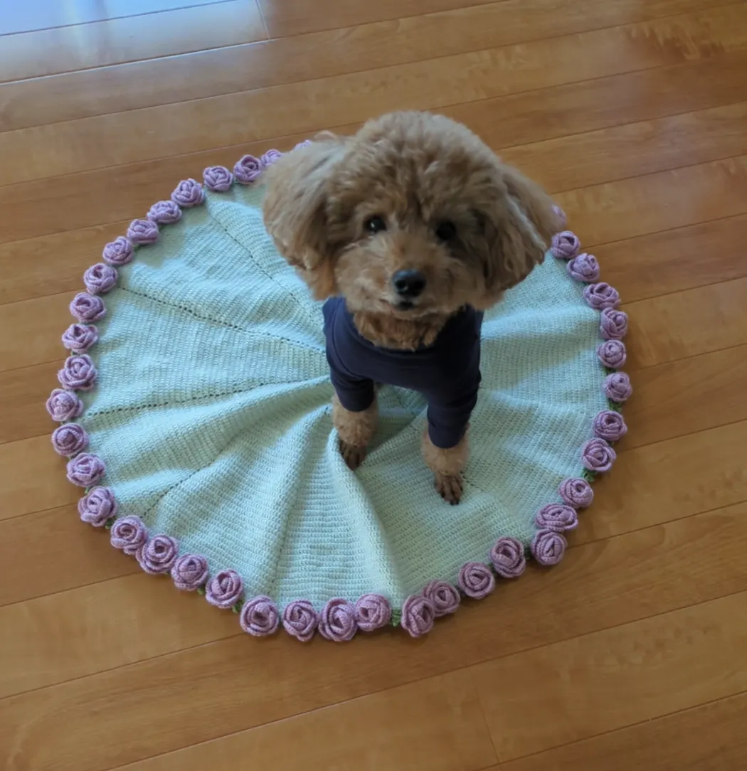 トイプーちゃんの画像、サーキュラースカートを履いて座っているように見えました。