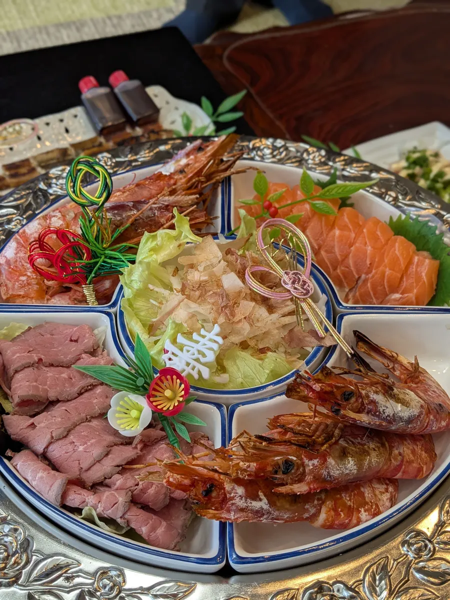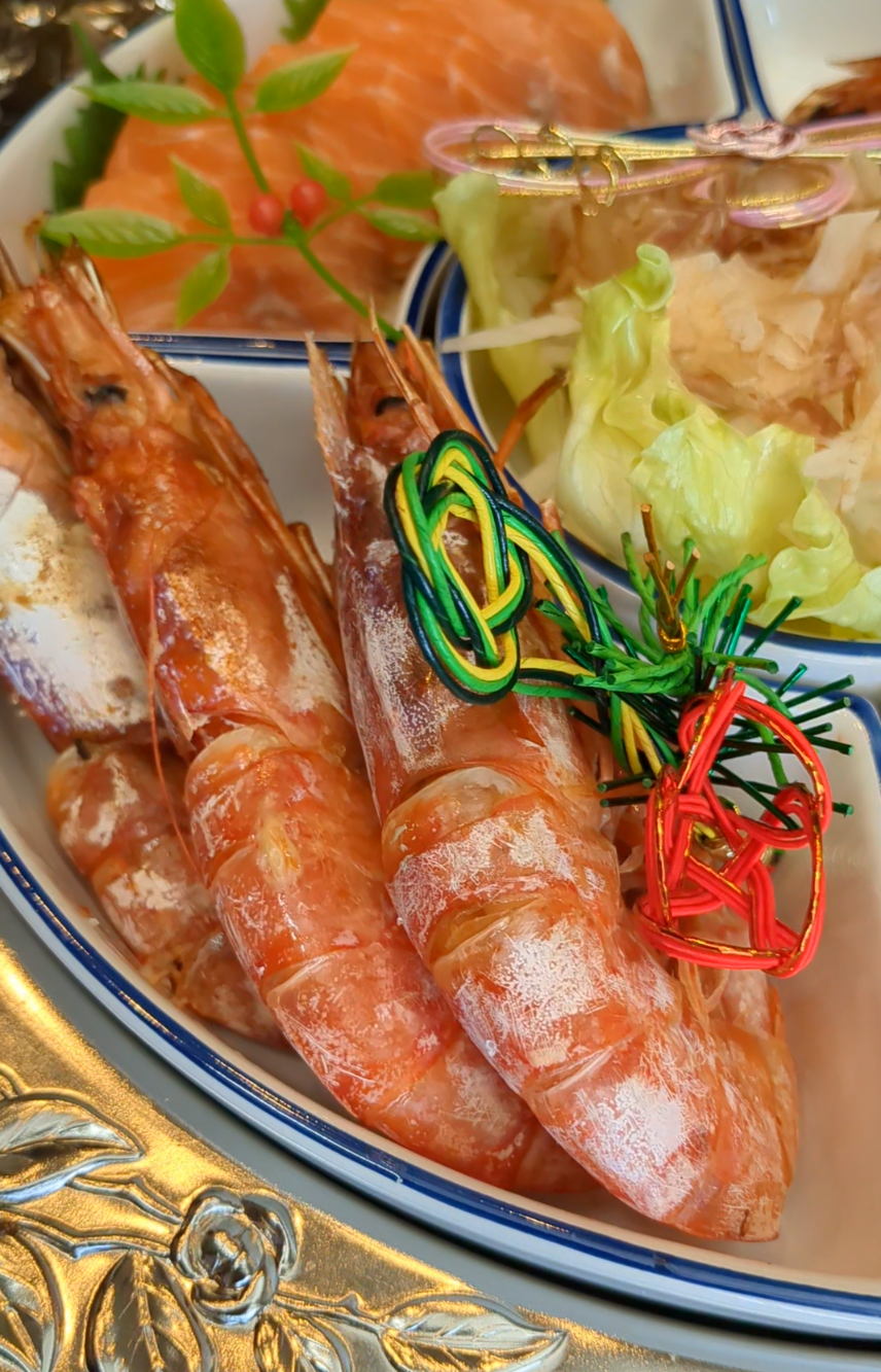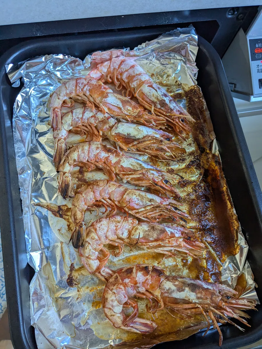 投稿を表示カリッと焼いた香ばしい海老🦐美味しそうです✨グリルで焼くだけで簡単にできるんですね😃👍オードブル皿にご馳走が並んでます。家族みんなで美味しいものをいただけるのがお正月の楽しみですものね〜🤗💕