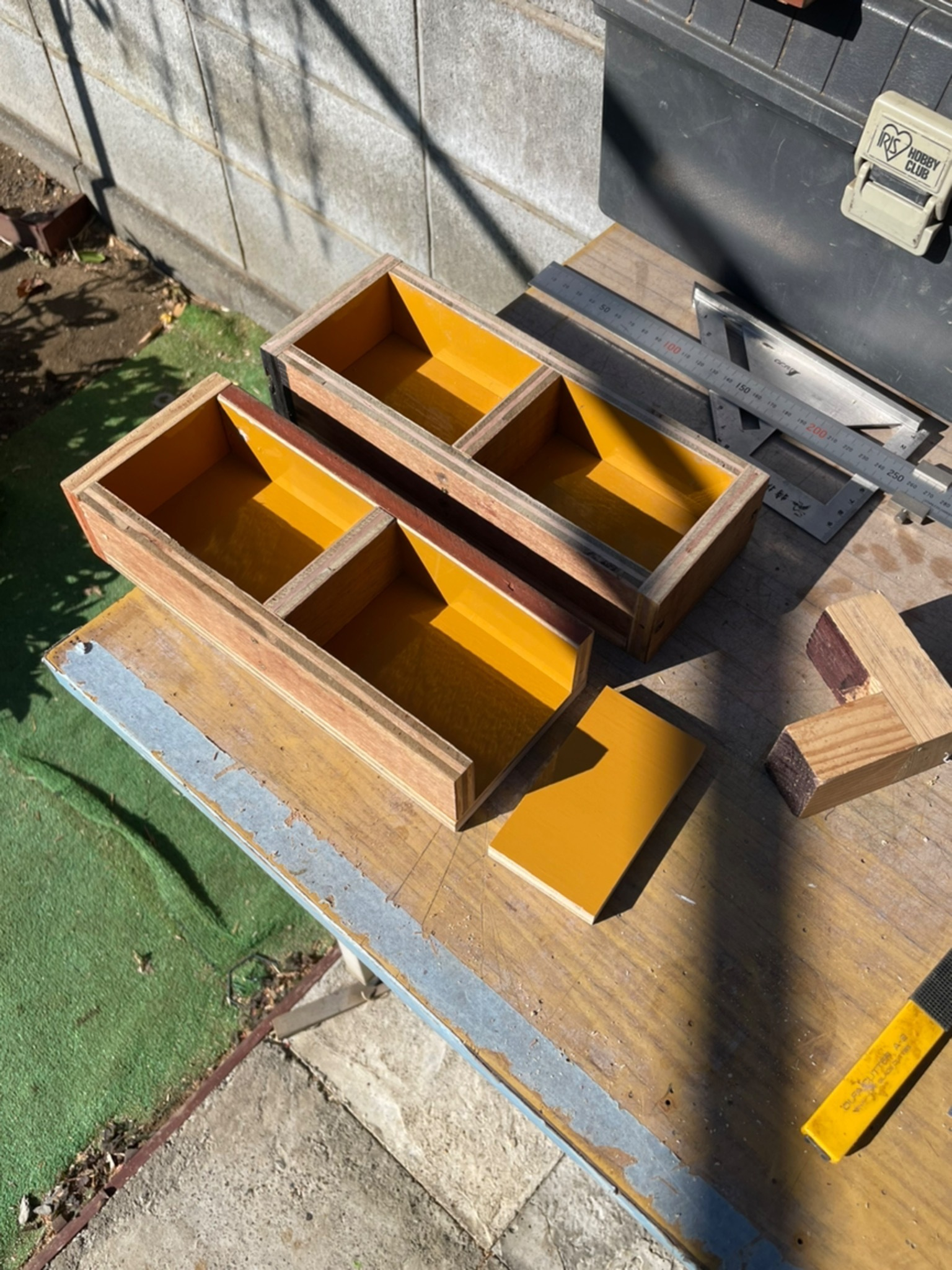 先日作ったコンクリ板作成用の型(リンク→ https://diy-square.cainz.com/announcements/rfwhme1lwgicxcf5 )と同じサイズのモノをもう一つ作って増産に備えました。