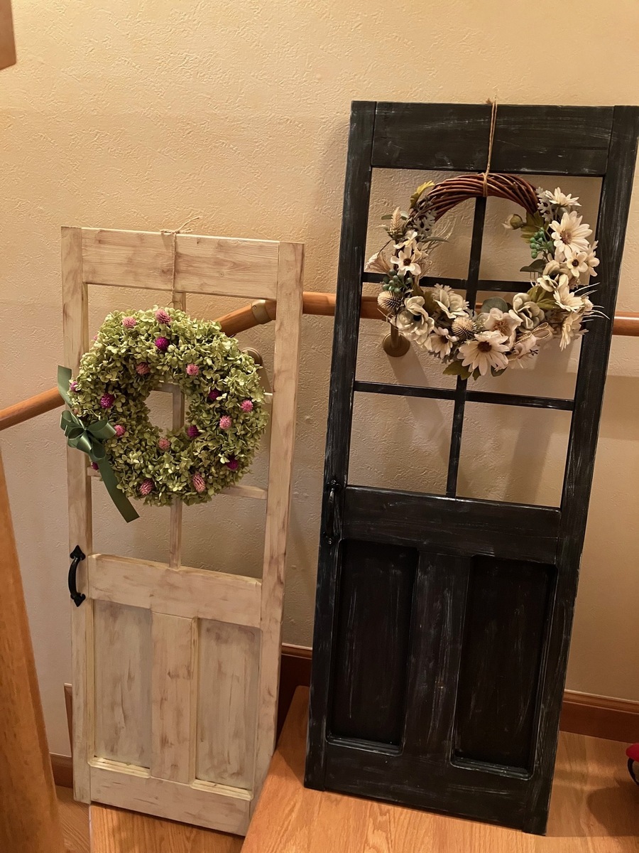 ブラックにホワイトで汚しを入れた、私には珍しい?カッコいい系のドアオブジェ