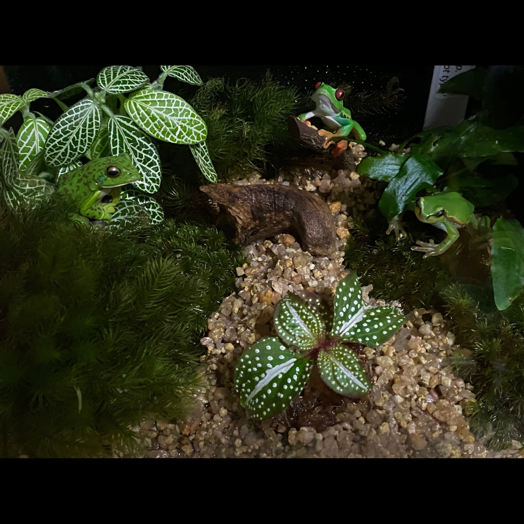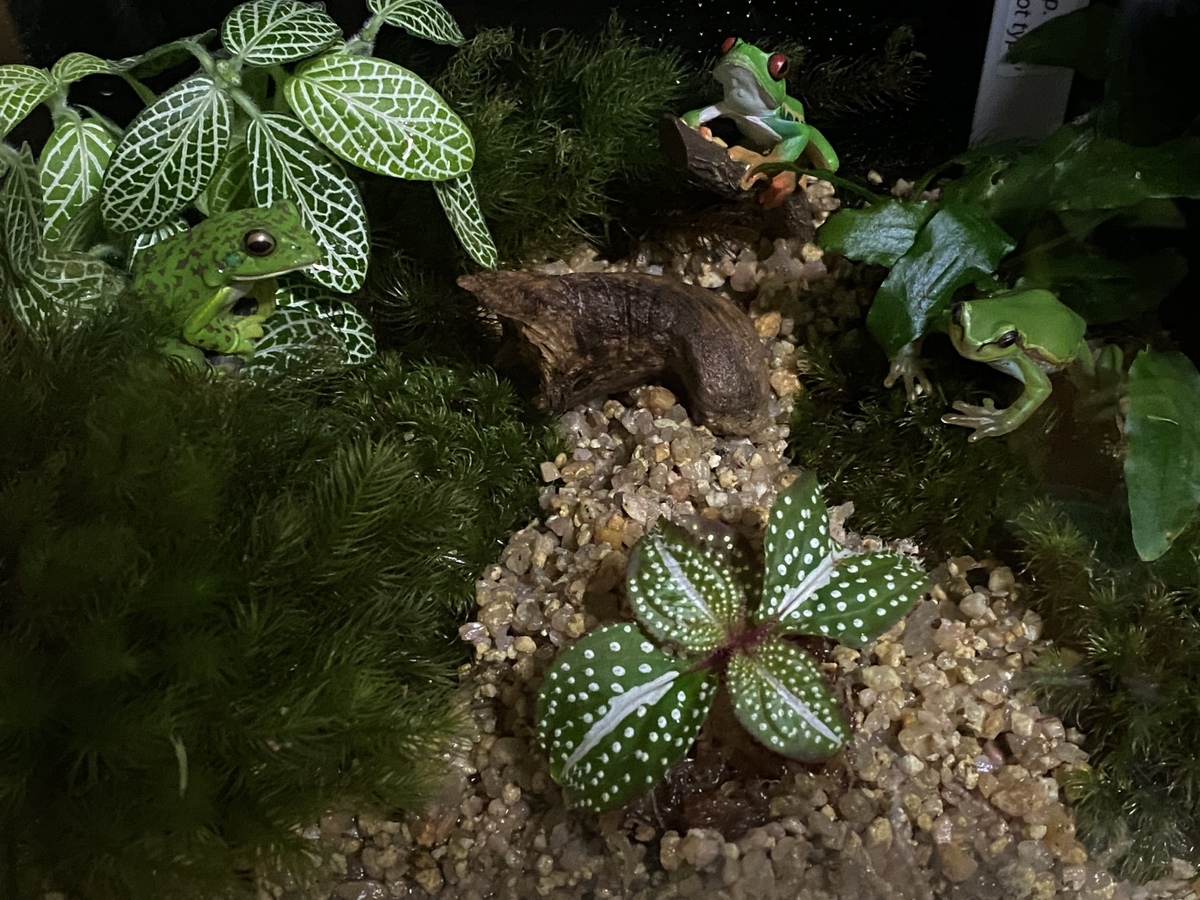 素敵なテラリウム、一番奥のカエルに見つめられてしまった🐸