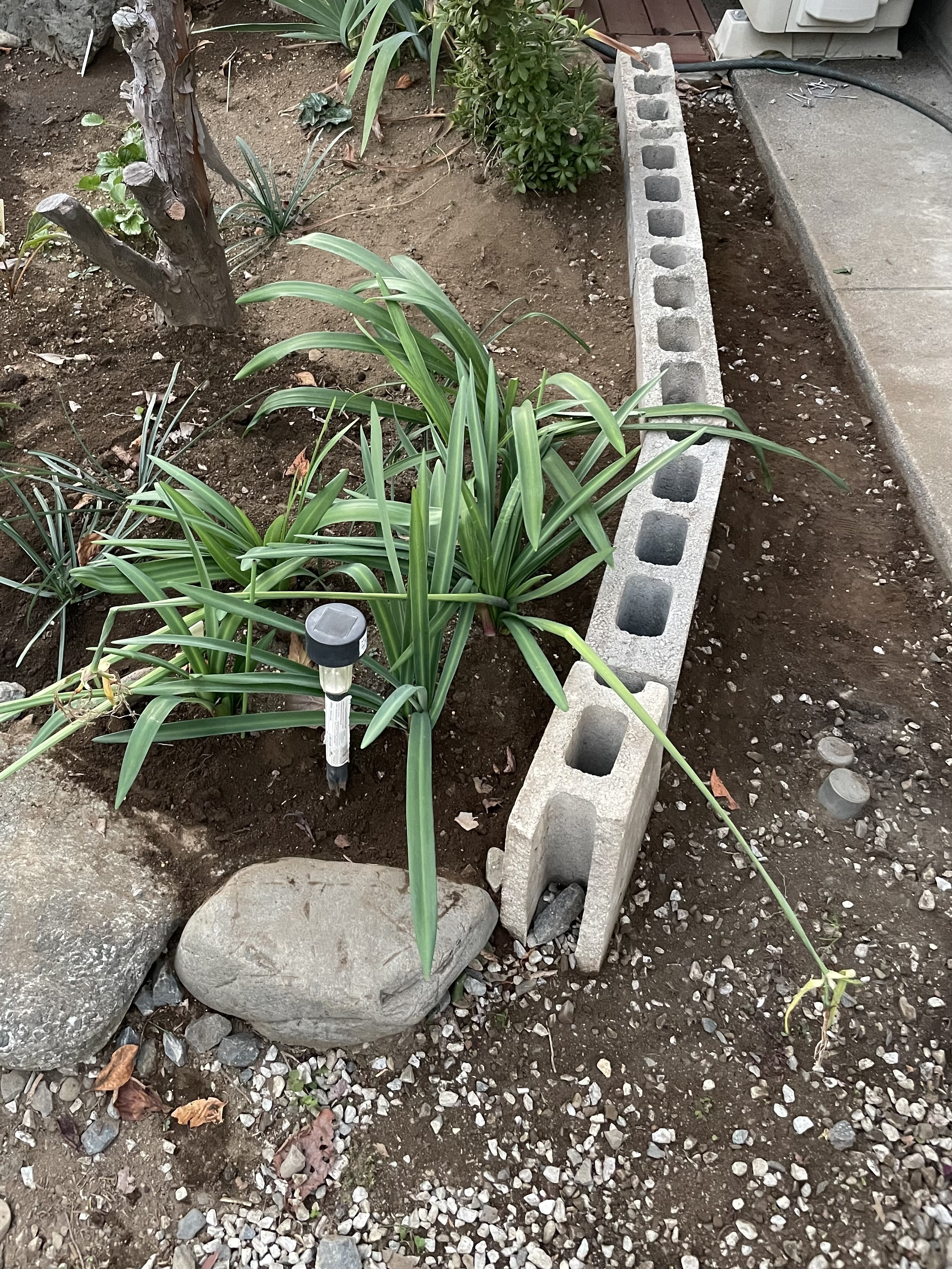 2年前に整えたはずの花壇の背面(リンク→ https://diy-square.cainz.com/chats/ztn7s9bcdvgybyee )でしたが、木材の腐敗(特に杭)が厳しくて(塗装の問題と思われます)、先日いただいたブロックで再構築する事に。