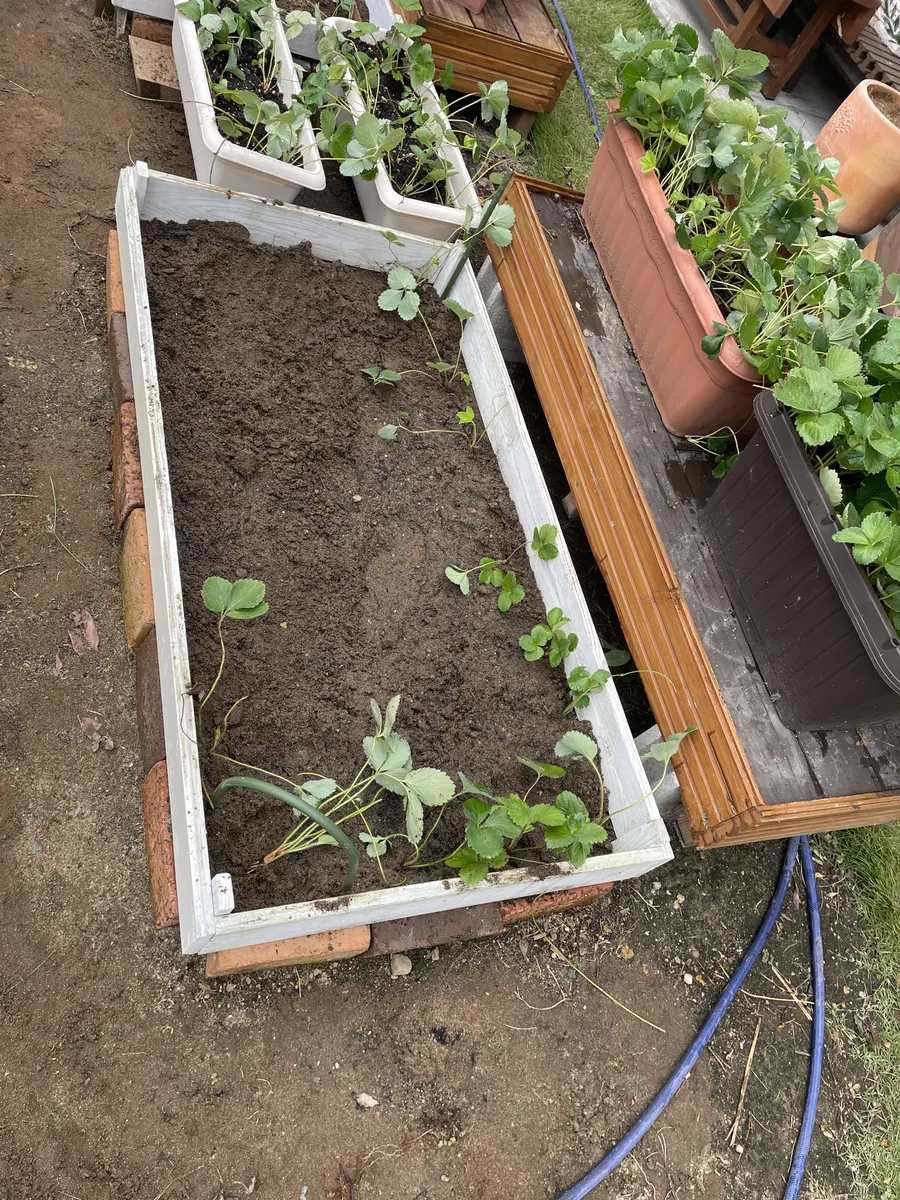 全部でプランター12個➕2個(イチゴが自分でランナーを伸ばして自生したプランター)の合計14プランターが出来ました🍓🍓🍓🍓🍓🍓🍓🍓🍓🍓🍓🍓➕🍓🍓➕地植え畑🍓w