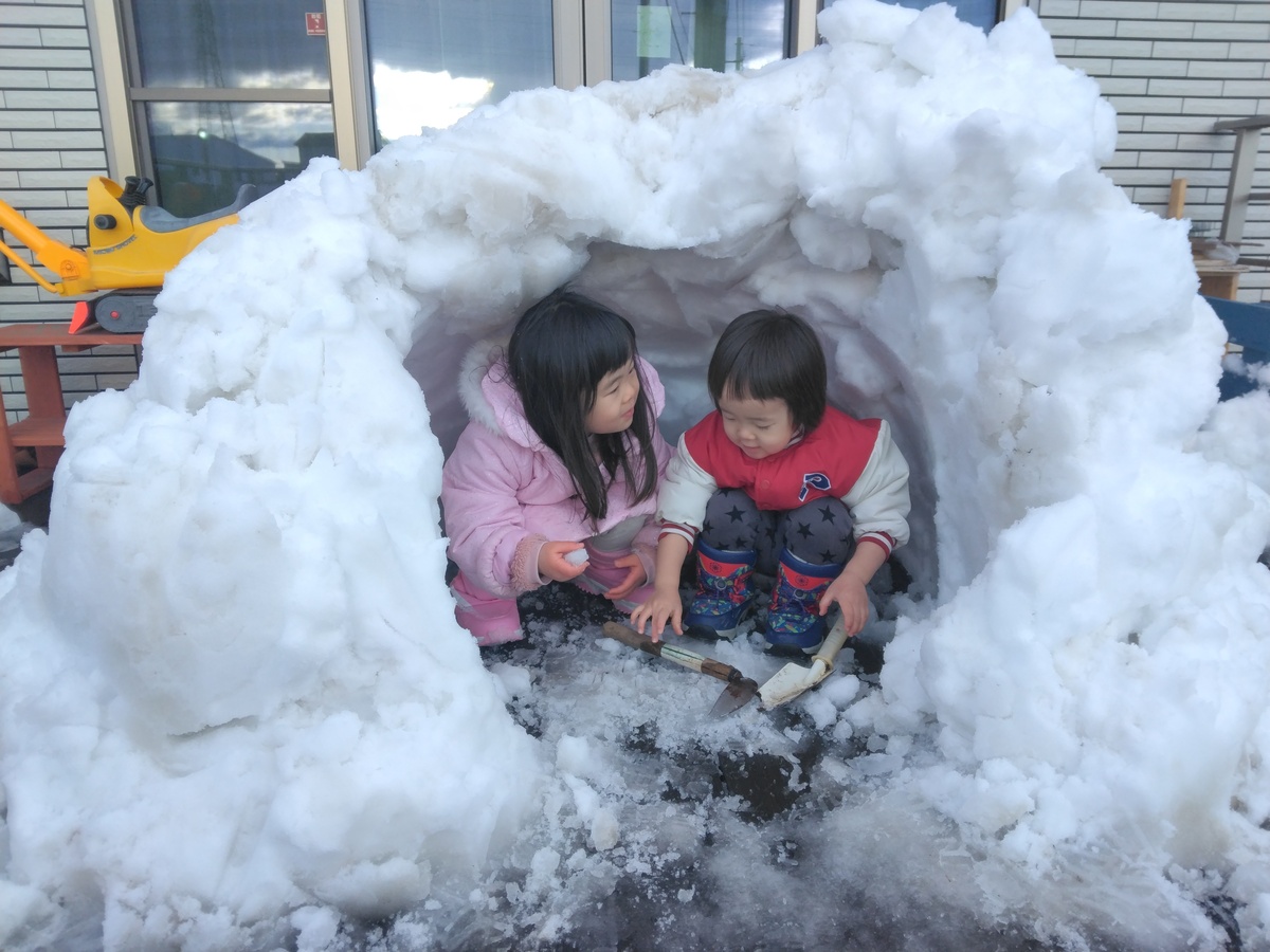 雪❄️の量もすごいけど、子供が入れるくらいのかまくらが作れるなんて!