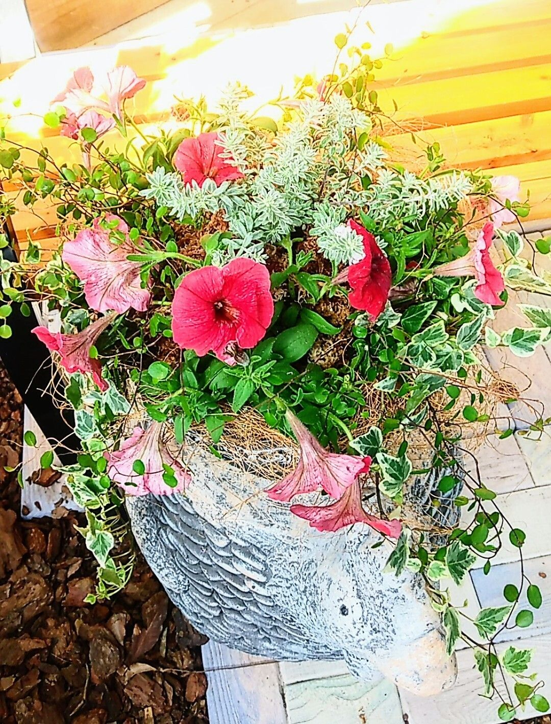 夏に向けて、ペチュニアとグリーンの寄せ植えは良いですね!