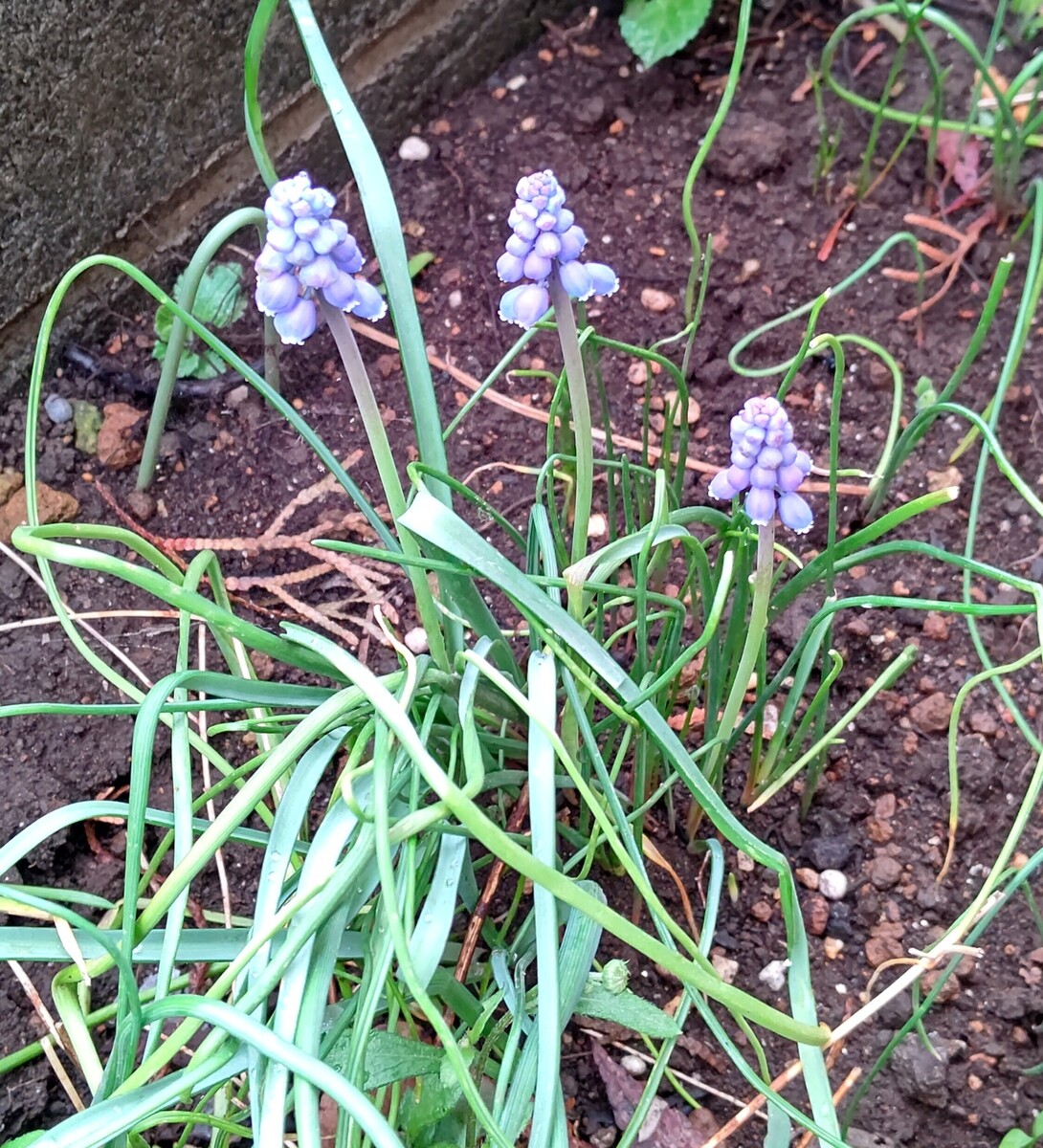 うちのムスカリも葉が長くてスッキリしてません😆品種なんでしょうか?