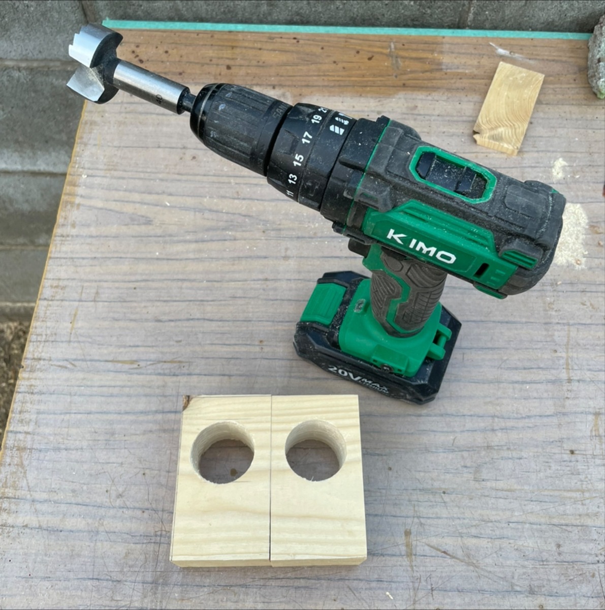 2箇所の小さな穴は、8㍉径で深さ4㌢です。短くなった鉛筆用で飾りみたいに。