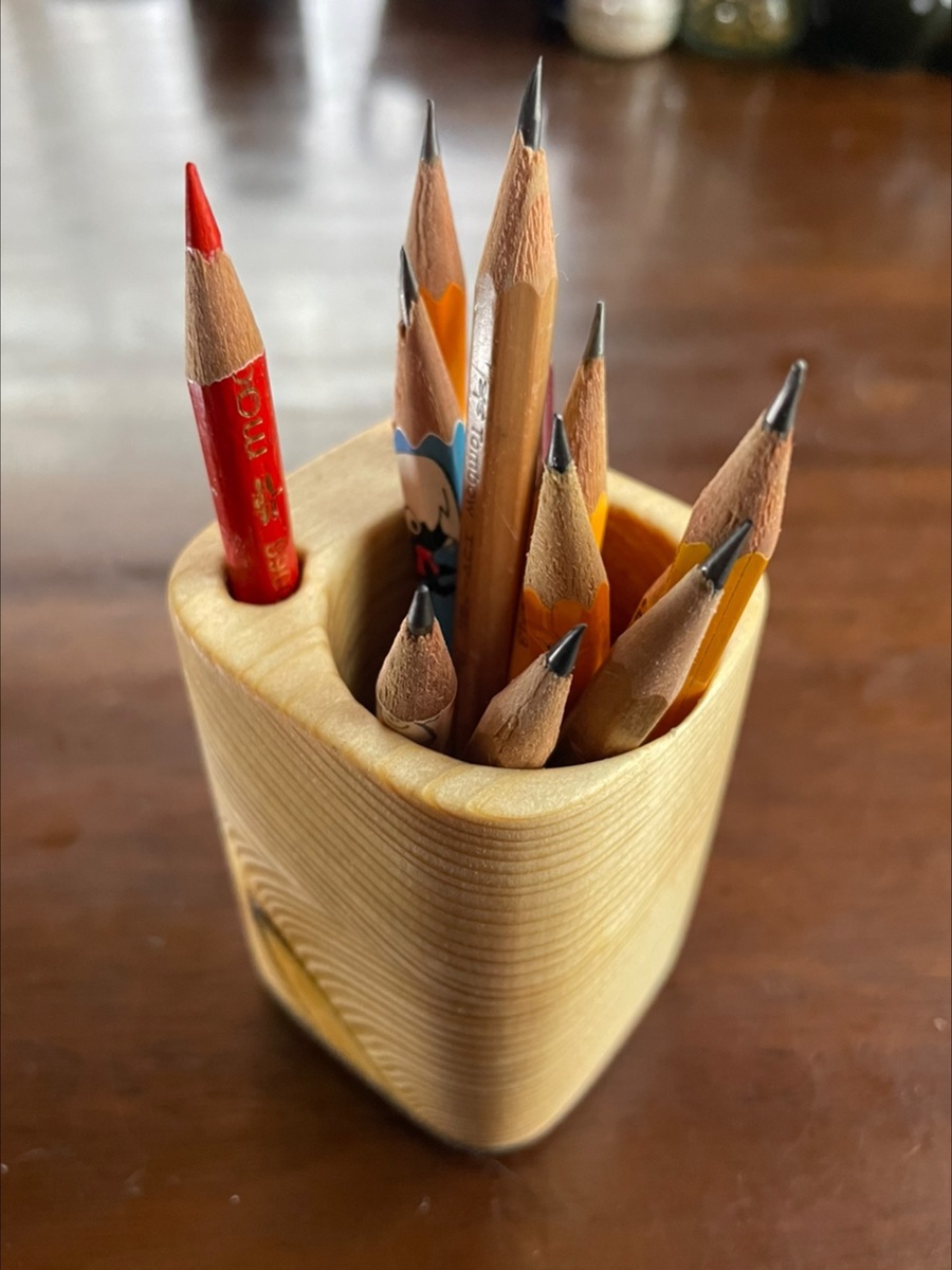 木工の時、鉛筆で墨線を引くんですが、削ってくと短くなるので取り出しにくくなります。なので、鉛筆専用の入れ物として作成しました。